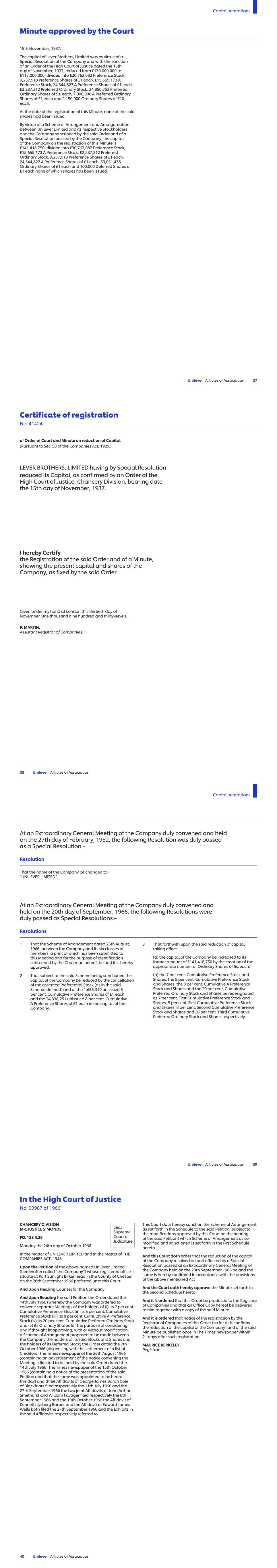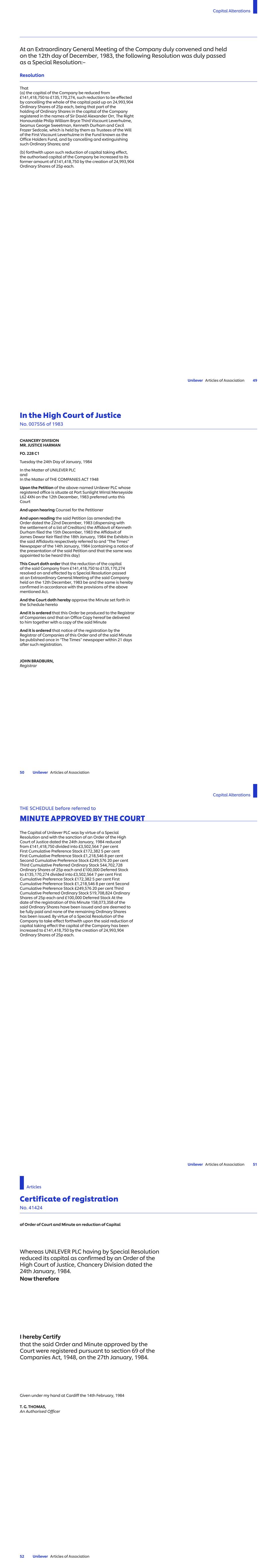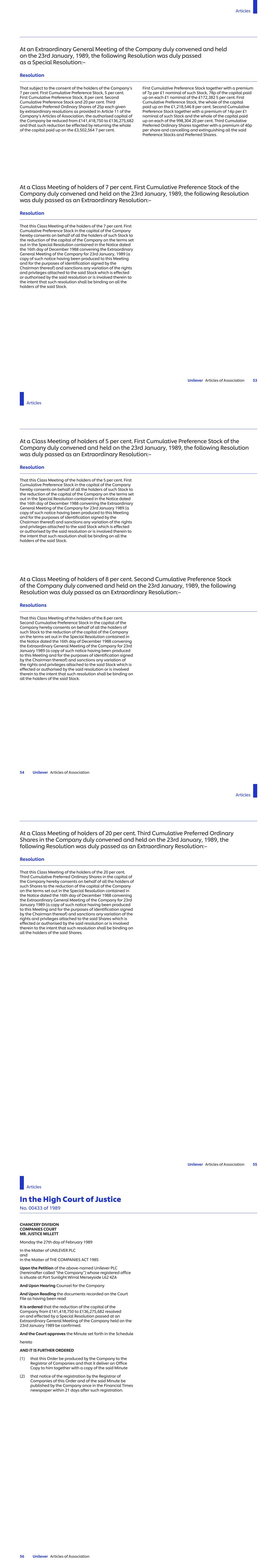 China – No. 78, Road II of Seaside Avenue, Cixi Economic and Technical Development Zone, (Hangzhou Bay New Zone), Ningbo Qinyuan Group Co. Limited (67.71) CNY1.00 1 China – Room 744, 9F, No. 583 Lingling Road, Xuhui District, Shanghai, 200030 Shanghai Qinyuan Environment Protection Technology Co. Limited (67.71) CNY1.00 1 China – No.33 North Fuquan Road, Changning District, Shanghai, 200335 Unilever (China) Investing Company USD1.00 1 China – 88 Jinxiu Avenue, Hefei Economic and Technology Development Zone, Anhui, 230601 Unilever (China) Limited USD1.00 1 Unilever Services (Hefei) Co. Ltd. CNY1.00 1 China – No. 225 Jingyi Road, Tianjin Airport Economic Area, Tianjin Unilever (Tianjin) Company Limited USD1.00 1 China – 1068 Ting Wei Road, Jinshanzui Industrial Region, Jinshan District, Shanghai Unilever Foods (China) Co. Limited USD1.00 1 China – No. 166, Lihua Avenue West, Qinglong Town, Pengshan District, Meishan City, Sichuan province 620800 Unilever (Sichuan) Company Limited USD1.00 1 China – No.16 Wanyuan Road, Beijing E&T Development, Beijing 100076 Wall`s (China) Co. Limited USD1.00 1 China – No. 358, Xingci 1 Road, Hangzhou Bay, New District, Ningbo, 315336 Zhejiang Qinyuan Water Treatment Technology Co. Limited (67.71) CNY1.00 1 China – Room 326, 3rd Floor, Xinmao Building, 2 South Taizhong Road, (Shanghai) Pilot Free Trade Zone Uchieve Commerce (Shanghai) Co., Ltd. CNY1.00 1 China – Floor 1, Building 2, No. 33, North Fuquan Road, Changning District, Shanghai, 200335 Shanghai CarverKorea Limited USD1.00 1 China- 2F, No. 10, Lane 255, Xiaotang Road, Fengxian District, Shanghai Paula's Choice (Shanghai) Trading Co. Limited CNY10,000,000 8 CNY10,000,000 9 China- Room 1436, No.1256 and 1258, Wanrong Road, Jingan District, Shanghai Paula's Choice (Shanghai) Technology Co. Limited CNY1.00 1 China- Zibian 2105, No.63, Mingzhu Avenue (North), Conghua District, Guangzhou City Unilever (Guangzhou) Co. Limited CNY1.00 1 China – Room 407, No 1256&1258 Wan Rong Road, Shanghai UPD China Limited CNY1.00 1 Colombia – Avenida Carrera 45, 108-27 Torre 3 Piso, 5Y 6 Bogotá D.C. Unilever Andina Colombia Limitada COP100.00 1 ULeX Colombia S.A.S. COP100.00 1 Costa Rica – De la intersección Cariari, 400 mts. Oeste y 800 mts al Norte, frente a sede Testigos de Jehová, Planta Industrial Lizano, Heredia, Belén, La Asunción de Belén Unilever de Centroamerica S.A. CRC1.00 1 Costa Rica – Provincia de Heredia, Cantón Belén, Distrito de la Asunción, de la intersección Cariari- Belén, 400 Mts. Oeste, 800 Mts., al Norte UL Costa Rica SCC S.A. CRC1.00 1 Côte d'Ivoire – 01 BP 1751 Abidjan 01, Boulevard de Vridi Unilever-Côte d'Ivoire (99.33) XOF2,650.00 1 Côte d'Ivoire – Abidjan-Marcory, Boulevard Valery Giscard d’Estaing, Immeuble Plein Ciel, Business Center, 26 BP 1377, Abidjan 26 Unilever Afrique de l’Ouest XOF10,000.00 1 Croatia – Strojarska cesta 20, 10000 Zagreb Unilever Hrvatska d.o.o. HRK1.00 1 Cuba – Zona Especial de Desarrollo Mariel, Provincia Artemisa Unilever Suchel, S.A. (60) USD1,000.00 56 Cyprus – Head Offices, 195C Old Road Nicosia Limassol, CY-2540 Idalion Industrial Zone – Nicosia Unilever Tseriotis Cyprus Limited (84) EUR1.00 1 Czech Republic – Voctářova 2497/18, 180 00 Praha 8 Unilever ČR, spol. s r.o. CZK210,000.00 1 Name of Undertaking Nominal Value Share Class Note UNILEVER RETAIL ČR, spol. s r.o. v likvidaci (in liquidation) CZK100,000.00 1 Denmark – Ørestads Boulevard 73, 2300 København S Unilever Danmark A/S DKK1,000.00 1 Denmark – Petersmindevej 30, 5000 Odense C Unilever Produktion ApS DKK100.00 1 Djibouti-Haramous, BP 169 Unilever Djibouti FZCO Limited USD200.00 1 Dominican Republic – Av. Winston Churchill, Torre Acropolis, Piso 16, Santo Domingo Unilever Caribe, S.A. DOP1,000.00 1 Ecuador – Km 25 Vía a Daule, Guayaquil Unilever Andina Ecuador S.A. USD1.00 1 Egypt – 5th Floor, North Tower, Galleria 40 Business Complex, Sheikh Zayed, 6th of October City, Giza Unilever Mashreq for Manufacturing and Trading (SAE) EGP10.00 1 Unilever Egypt for Shared Consultations Services EGP10.00 1 Egypt – Public Free Zone, Alexandria Unilever Mashreq International Company USD1,000.00 5 Egypt – 14 May Bridge, Sidi Gaber, Smouha – Alexandria Unilever Mashreq Trading LLC (in liquidation) EGP1000.00 5 Commercial United for Import and Export LLC EGP1000.00 1 Egypt – 15 Sphinx Square, El-Mohandsin, Giza Unilever Mashreq for Import and Export LLC EGP100.00 1 El Salvador – Local 19 Nivel 19, Edificio Torre Futura, Calle El Mirador y 87 avenida norte, Colonia Escalón, San Salvador Unilever El Salvador, SCC S.A. de C.V. USD1.00 1 Unilever de Centro America S.A. de C.V. USD11.00 1 England and Wales – Unilever House, 100 Victoria Embankment, London, EC4Y 0DY Accantia Group Holdings (unlimited company) GBP0.01 1 Alberto-Culver (Europe) Limited GBP1.00 1 Alberto-Culver Group Limited GBP1.00 1 Alberto-Culver UK Holdings Limited GBP1.00 1 Alberto-Culver UK Products Limited GBP1.00 1 GBP5.00 14 Associated Enterprises Limited° GBP1.00 1 CPC (UK) Pension Trust Limited 16 GroNext Technologies Limited GBP1.00 1 Hourglass Cosmetics UK Limited GBP1.00 1 Margarine Union (1930) Limited° GBP1.00 1 GBP1.00 18 GBP1.00 68 GBP1.00 69 MBUK Trading Limited GBP1.00 1 Mixhold Investments Limited GBP1.00 1 ND4A Limited GBP1.00 1 TIGI Holdings Limited GBP1.00 1 Toni & Guy Products Limited° GBP0.001 1 UAC International Limited GBP1.00 1 UML Limited GBP1.00 1 Unidis Forty Nine Limited GBP1.00 1 Unilever AC Limited GBP1.00 1 Unilever Assam Estates Limited GBP1.00 1 Unilever Company for Industrial Development Limited GBP1.00 1 Unilever Company for Regional Marketing and Research Limited GBP1.00 1 Unilever Corporate Holdings Limited° GBP1.00 1 Unilever Employee Benefit Trustees Limited GBP1.00 1 Unilever Group Limited° GBP0.25 1 Unilever South India Estates Limited° GBP1.00 1 GBP1.00 15 Name of Undertaking Nominal Value Share Class Note STRATEGIC 