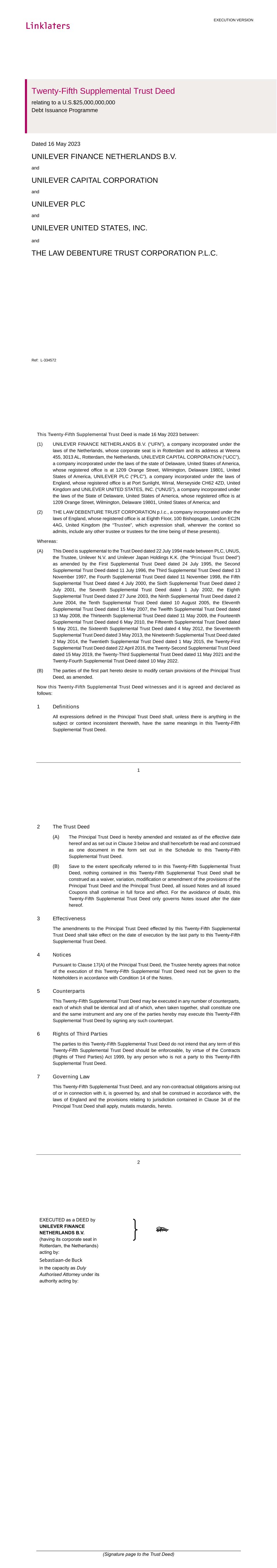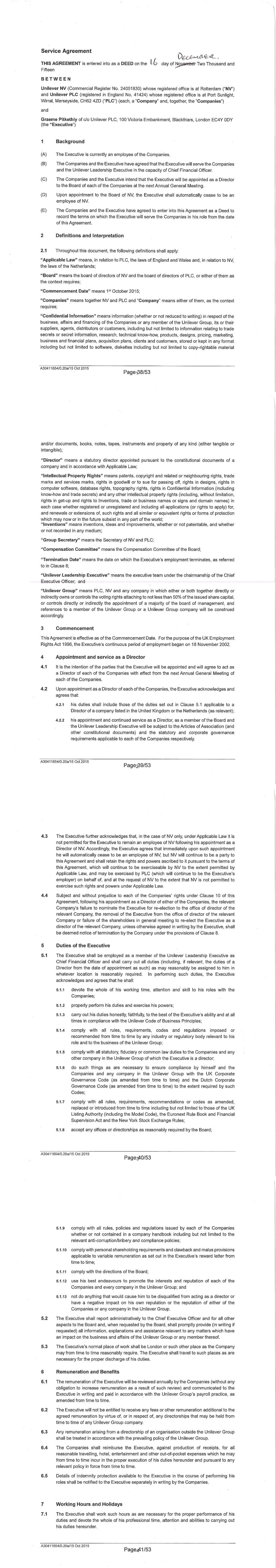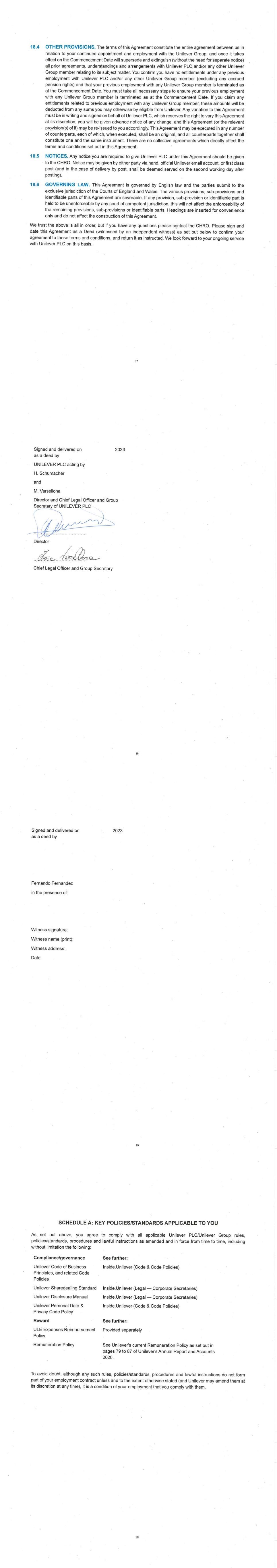 PSP AWARD AGREEMENT March 2024 1.5. Unilever contracts as trustee and agent for the benefit of each Unilever Group member. From time to time it may be necessary for me to enter into matching restrictive covenants like these directly with another Unilever Group member (e.g. if my employing entity changes), and I agree to do so if requested (and if I fail to do so within 7 days of receiving any such request, I hereby irrevocably and unconditionally authorise Unilever to execute on my behalf any document(s) required to give effect to this Clause 1.5).