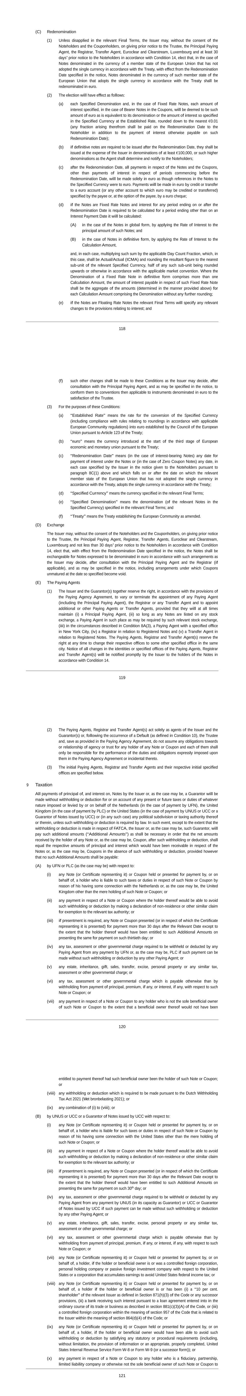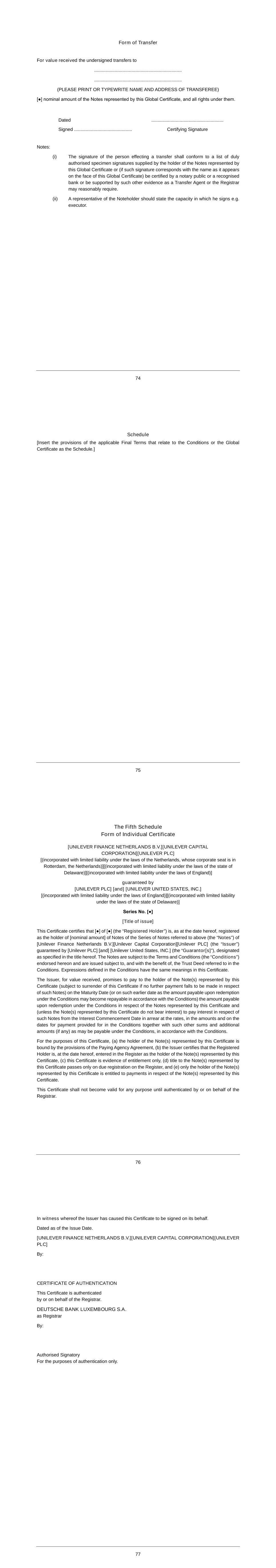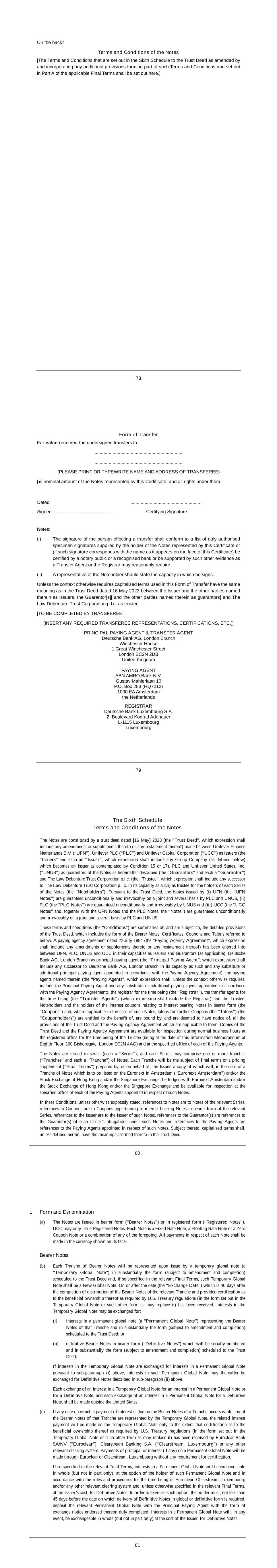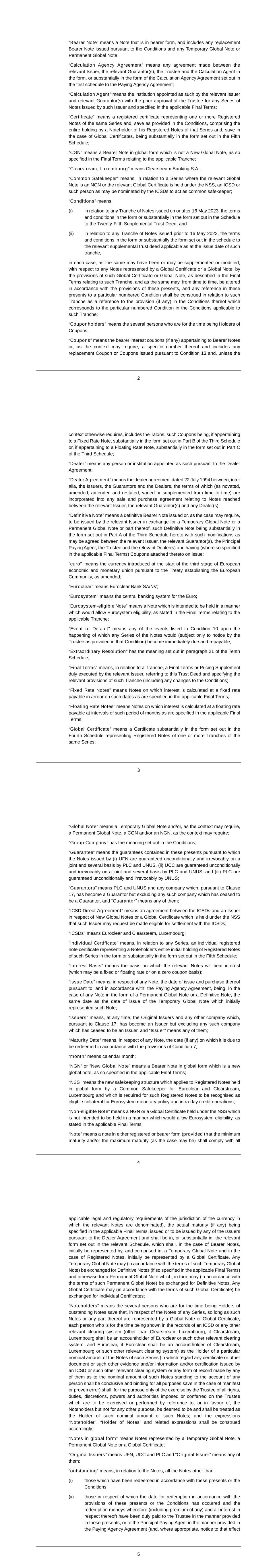 Subsidiary Guarantors and Issuers of Guaranteed Securities Each of the following securities issued by Unilever Capital Corporation (UCC), a wholly owned subsidiary of Unilever PLC (PLC), is unconditionally and fully guaranteed, jointly and severally, by PLC and Unilever United States, Inc. (UNUS), a wholly owner subsidiary of PLC: $500M 0.626% Notes due 2024 $500M 3.25% Notes due 2024 $1000M 2.6% Notes due 2024 $500M 3.1% Notes due 2025 $350M 3.375% Notes due 2025 $700M 2.0% Notes due 2026 $1000M 2.9% Notes due 2027 $700M 4.875% Notes due 2028 $1300M 3.5% Notes due 2028 $850M 2.125% Notes due 2029 €550M 3.300% Notes due 2029 $500M 1.375% Notes due 2030 $850M 1.750% Notes due 2031 $1000M 5.9% Notes due 2032 $800M 5.000% Notes due 2033 €700M 3.400% Notes due 2033 $650M 2.625% Notes due 2051