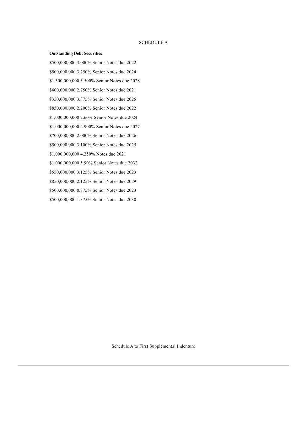 0.626% Notes due 2024 3.250% Notes due 2024 2.600% Notes due 2024 3.250% Notes due 2024 3.100% Notes due 2025 3.375% Notes due 2025 2.000% Notes due 2026 2.900% Notes due 2027 3.500% Notes due 2028 4.875% Notes due 2028 2.125% Notes due 2029 3.300% Notes due 2029 1.375% Notes due 2030 1.750% Notes due 2031 5.900% Notes due 2032 5.000% Notes due 2033 3.400% Notes due 2033 2.625% Notes due 2051