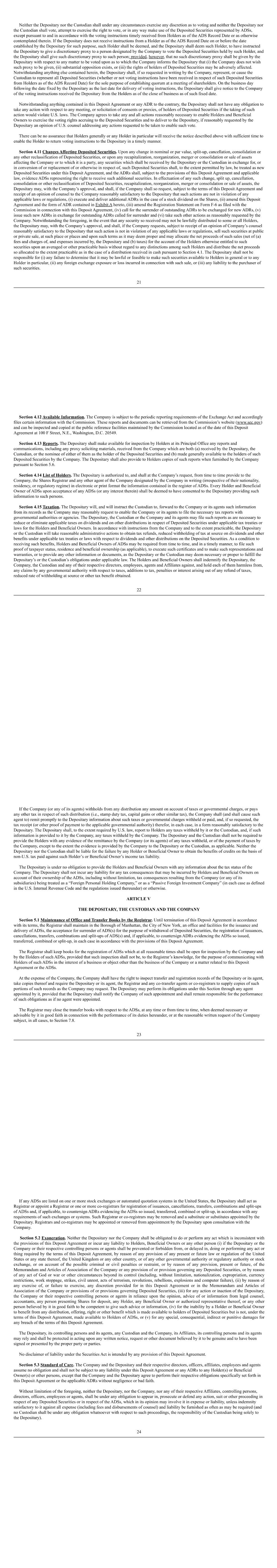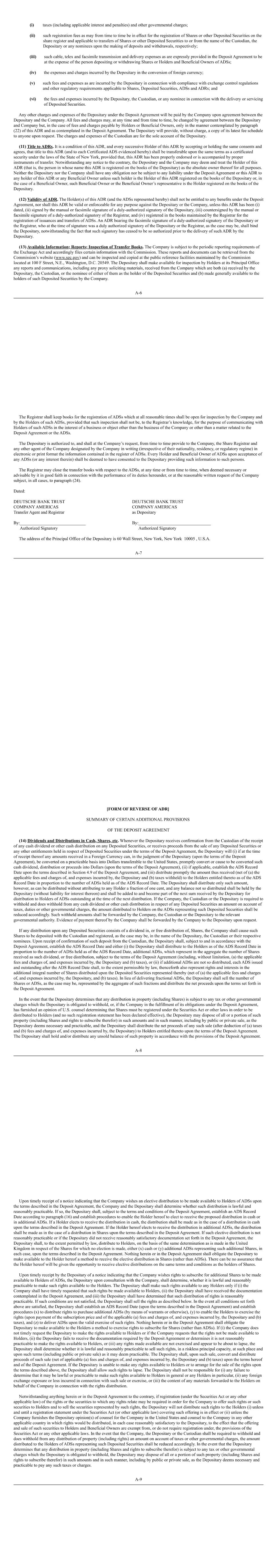 *Not for trading, but only in connection with the registration of the American Depositary Shares pursuant to the requirements of the Securities and Exchange Commission.