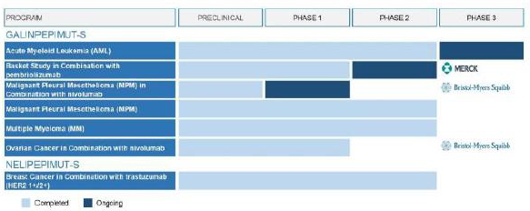 In February 2020, a Phase 1 open-label investigator-sponsored clinical trial of GPS, in combination with Bristol-Myers Squibb’s anti-PD-1 therapy, nivolumab (Opdivo®), in patients with malignant pleural mesothelioma, or MPM, who harbor relapsed or refractory disease after having received frontline standard of care multimodality therapy was commenced at MSK. Enrollment of a target total of 10 evaluable patients was completed at the end of 2022. We reported positive topline safety and efficacy data from this study in June 2023 and positive follow-up immune response and survival data in December 2023.