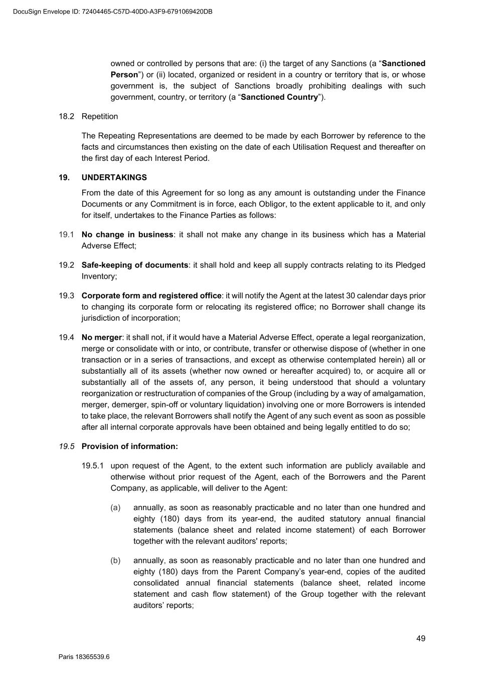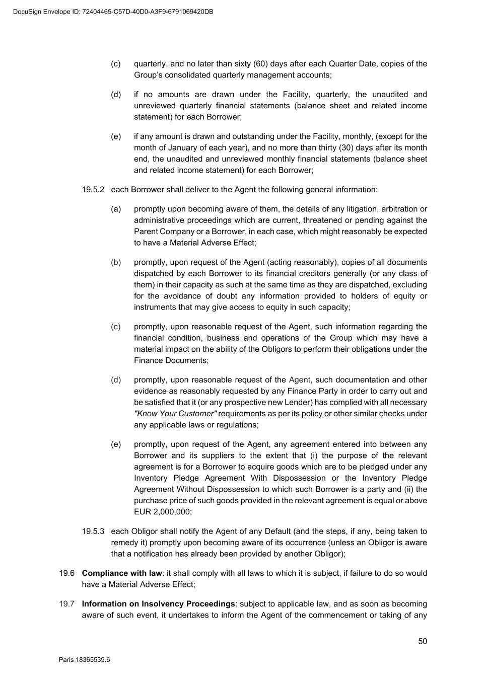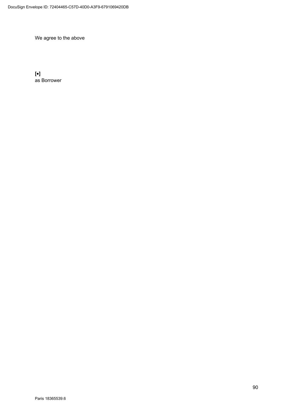 90 Paris 18365539.6 We agree to the above [] as Borrower DocuSign Envelope ID: 72404465-C57D-40D0-A3F9-6791069420DB