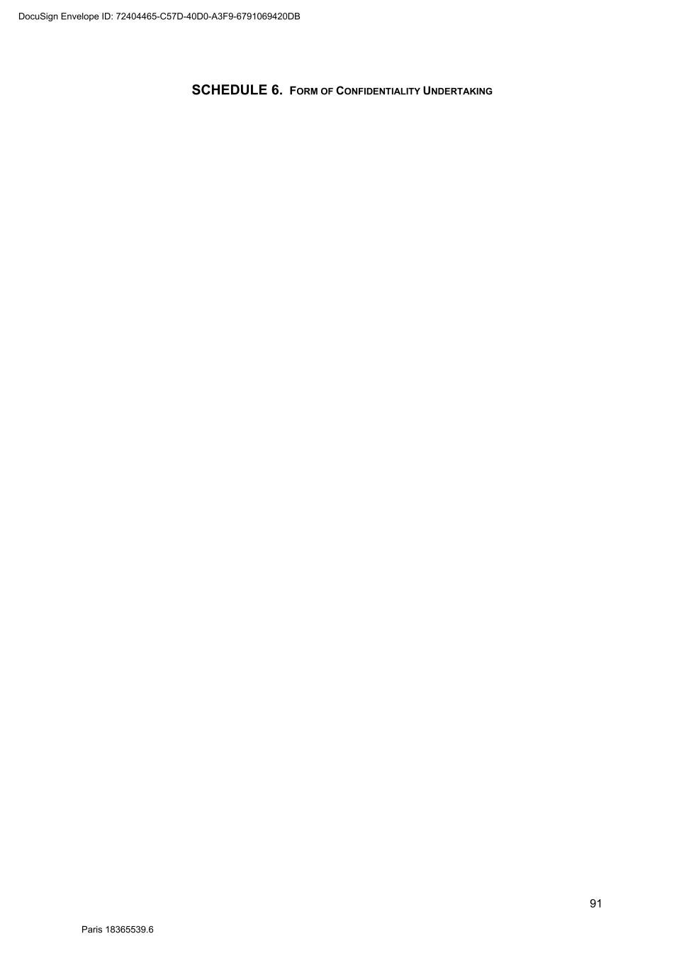 91 Paris 18365539.6 SCHEDULE 6. FORM OF CONFIDENTIALITY UNDERTAKING DocuSign Envelope ID: 72404465-C57D-40D0-A3F9-6791069420DB