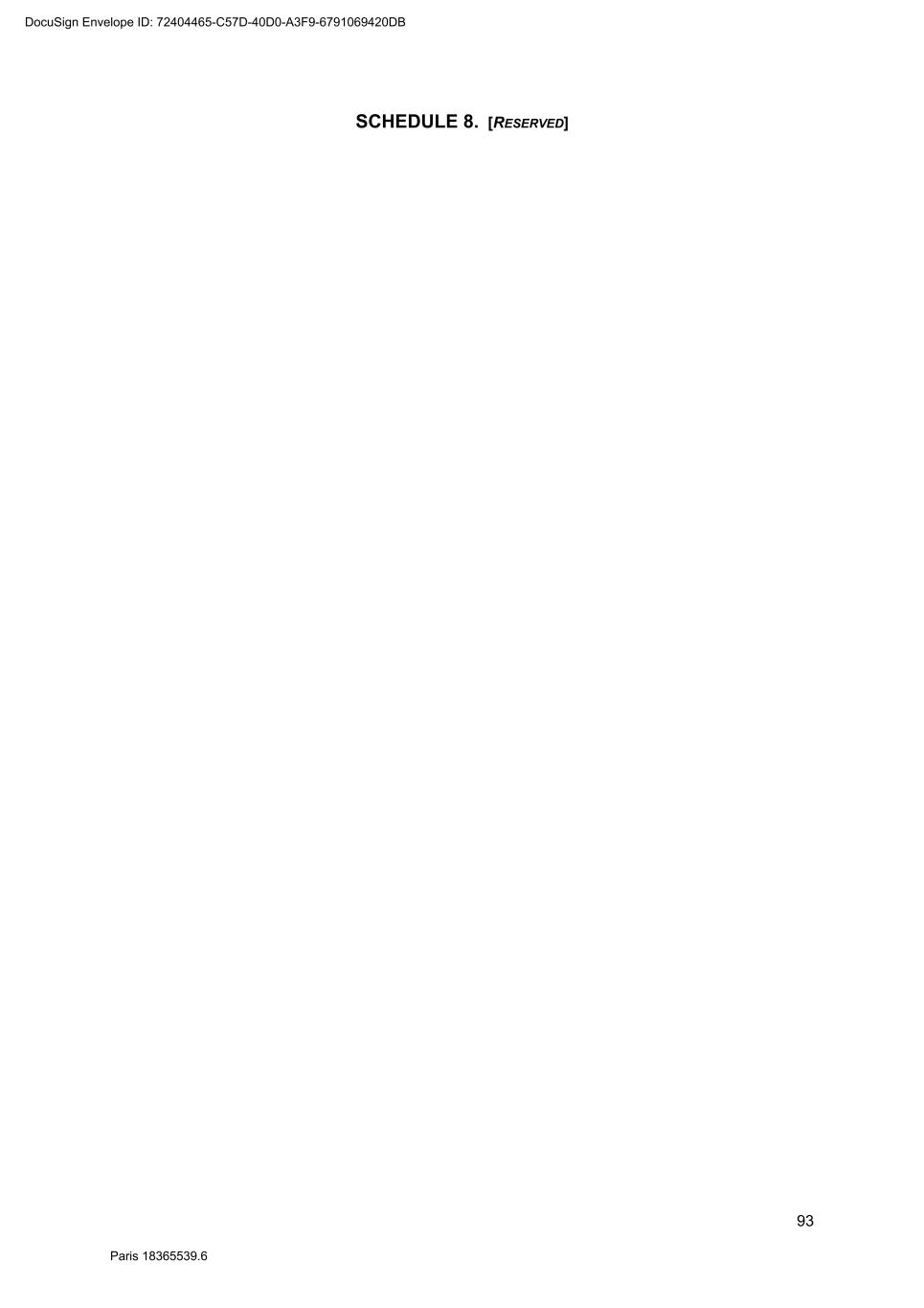 93 Paris 18365539.6 SCHEDULE 8. [RESERVED] DocuSign Envelope ID: 72404465-C57D-40D0-A3F9-6791069420DB