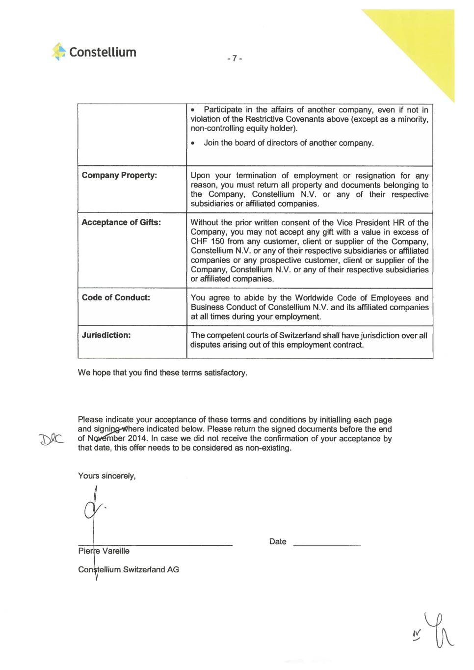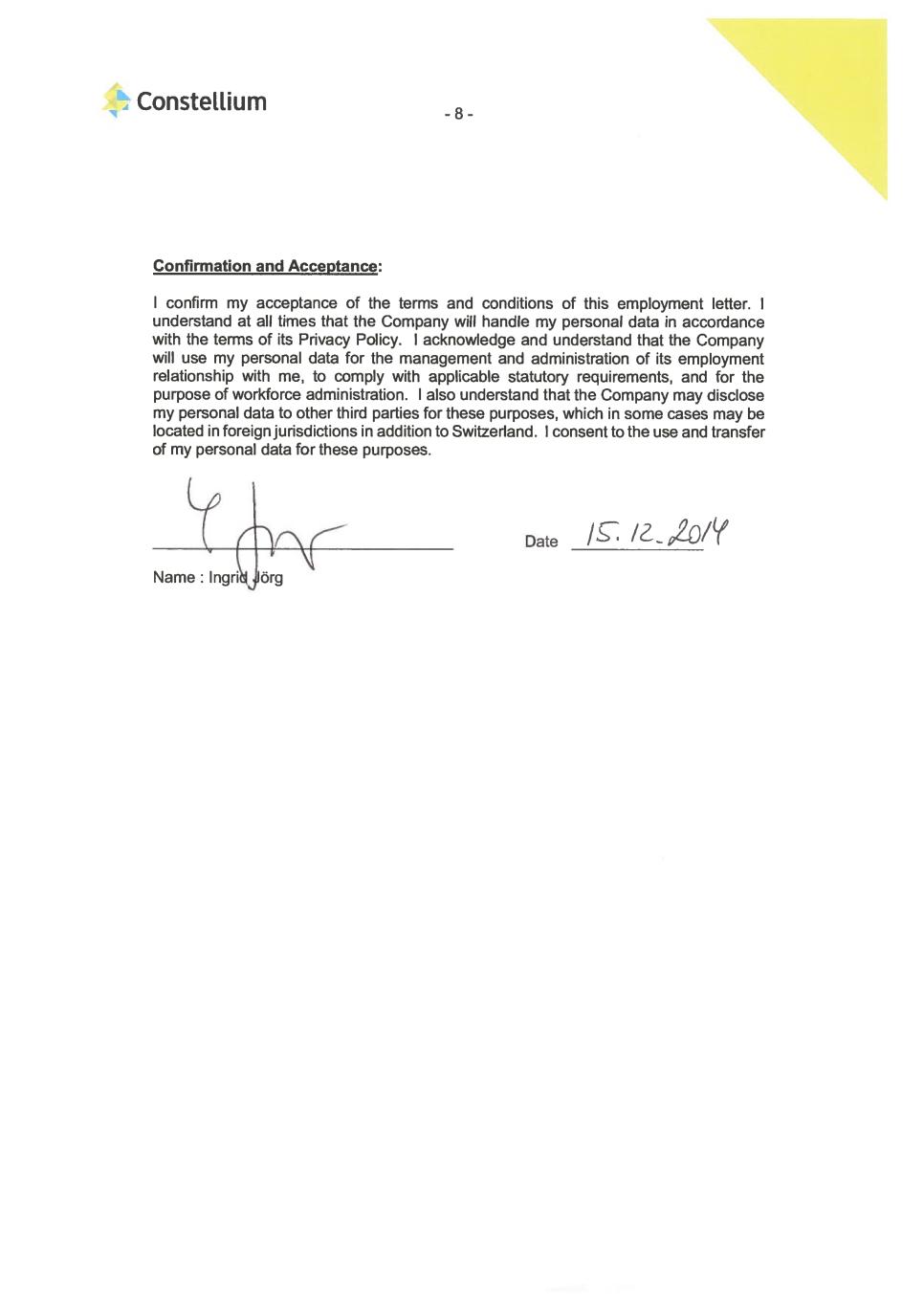 Constellium Acknowledged and accepted: Date/Location 4) IngridJör