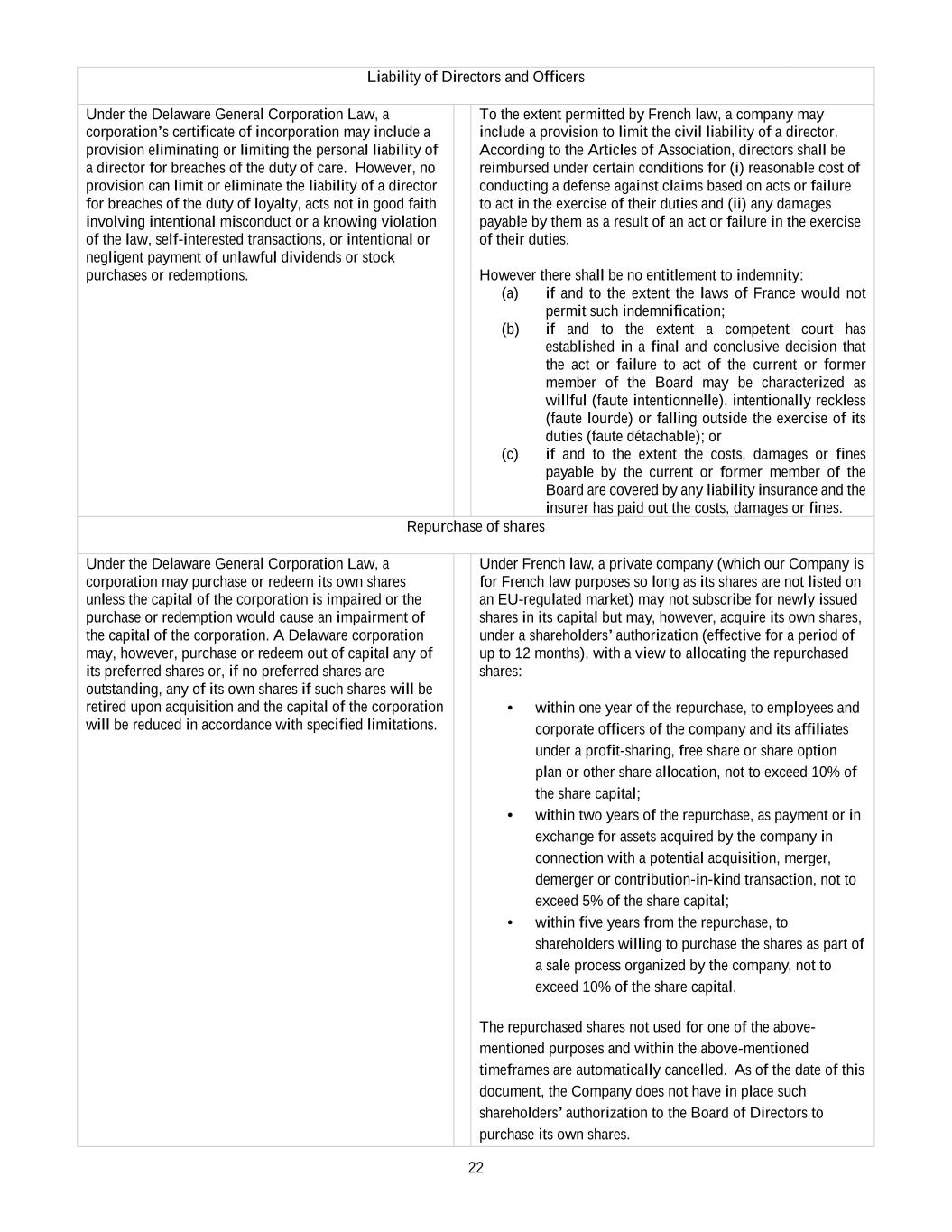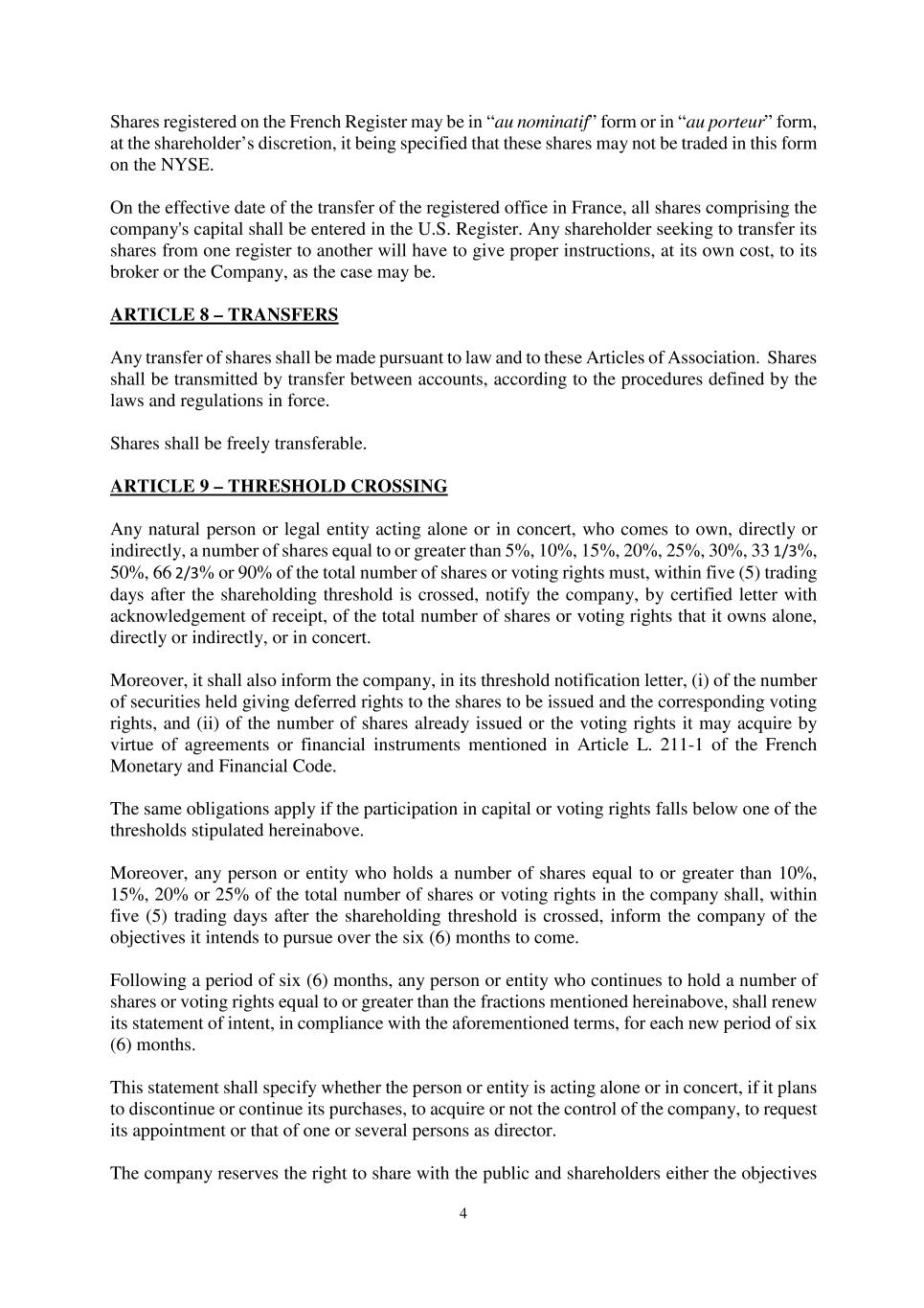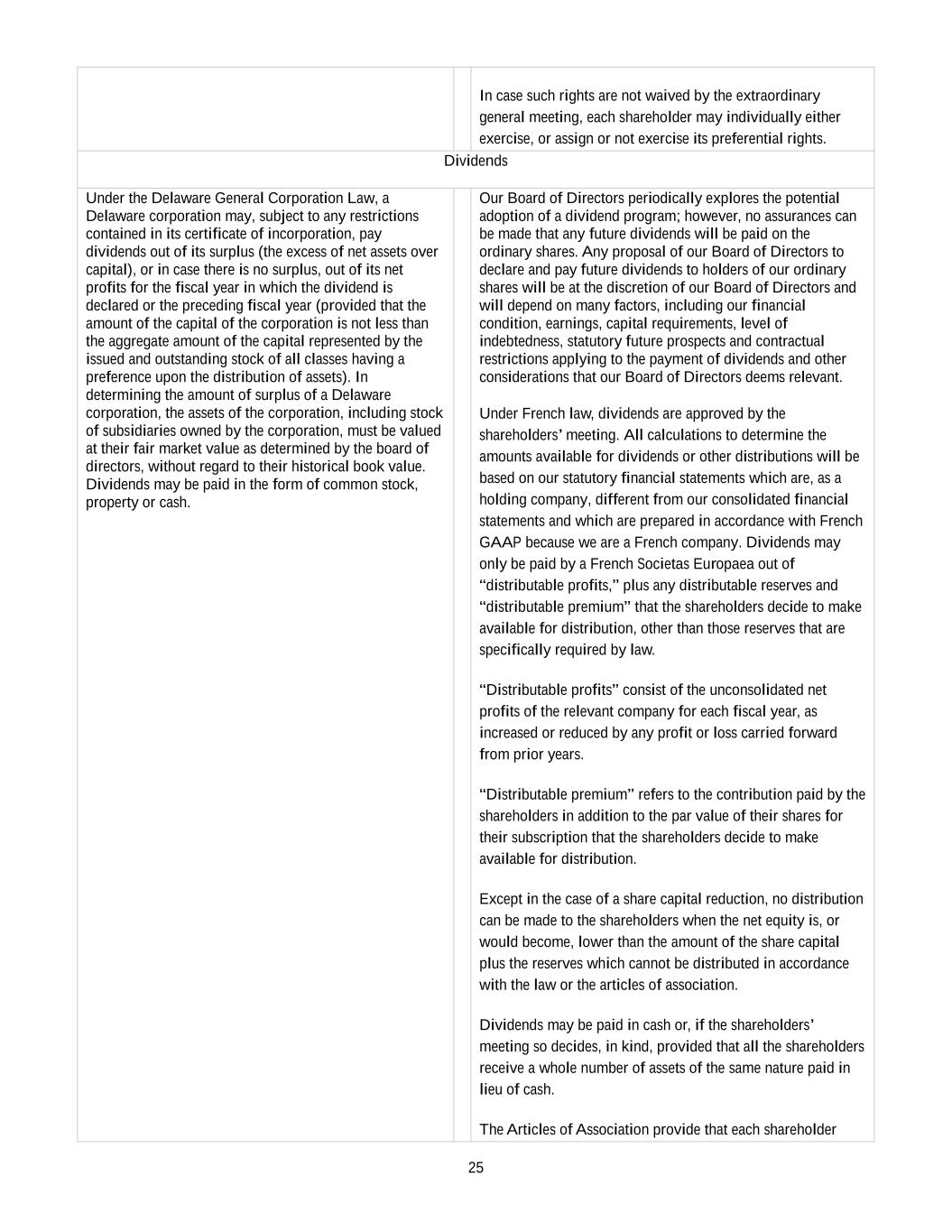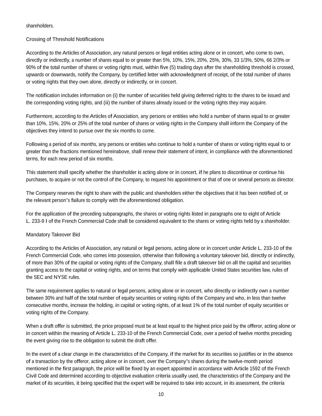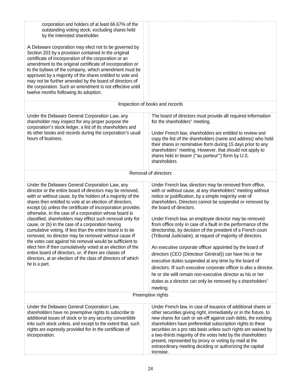 •Any inability of the Company to continue to benefit from French provisions applicable to registered intermediaries (“intermédiaires inscrits”) could adversely affect the rights of shareholders.