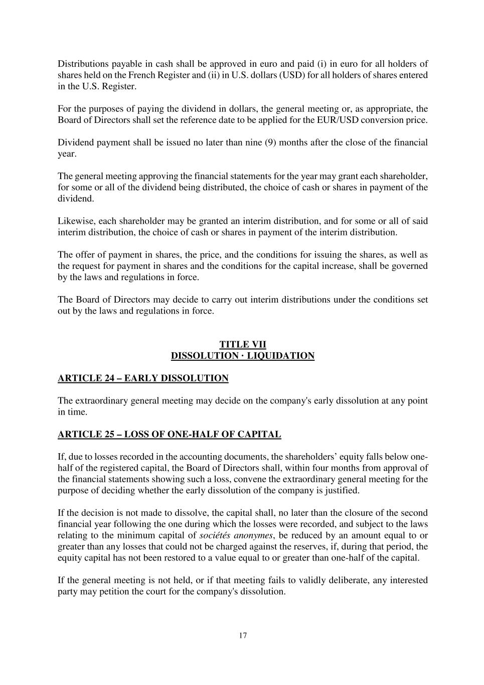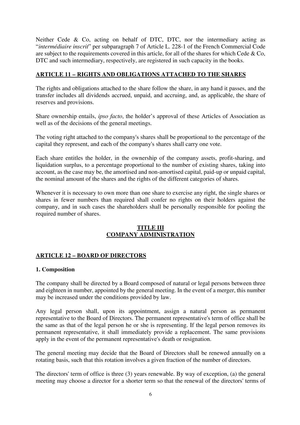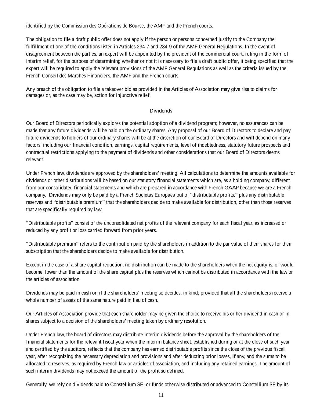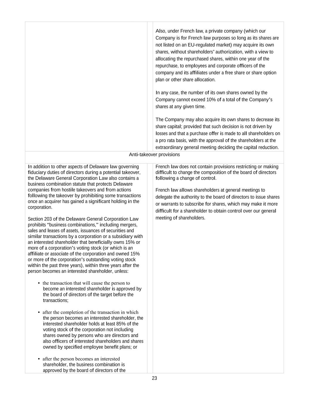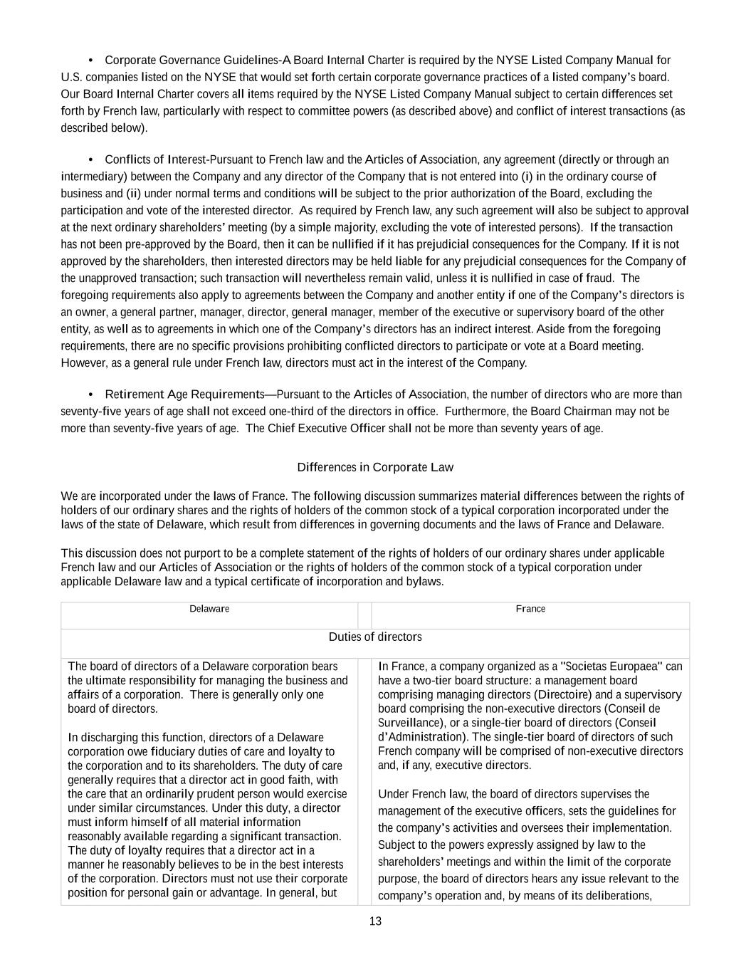 •Any inability of the Company to continue to benefit from French provisions applicable to registered intermediaries (“intermédiaires inscrits”) could adversely affect the rights of shareholders.