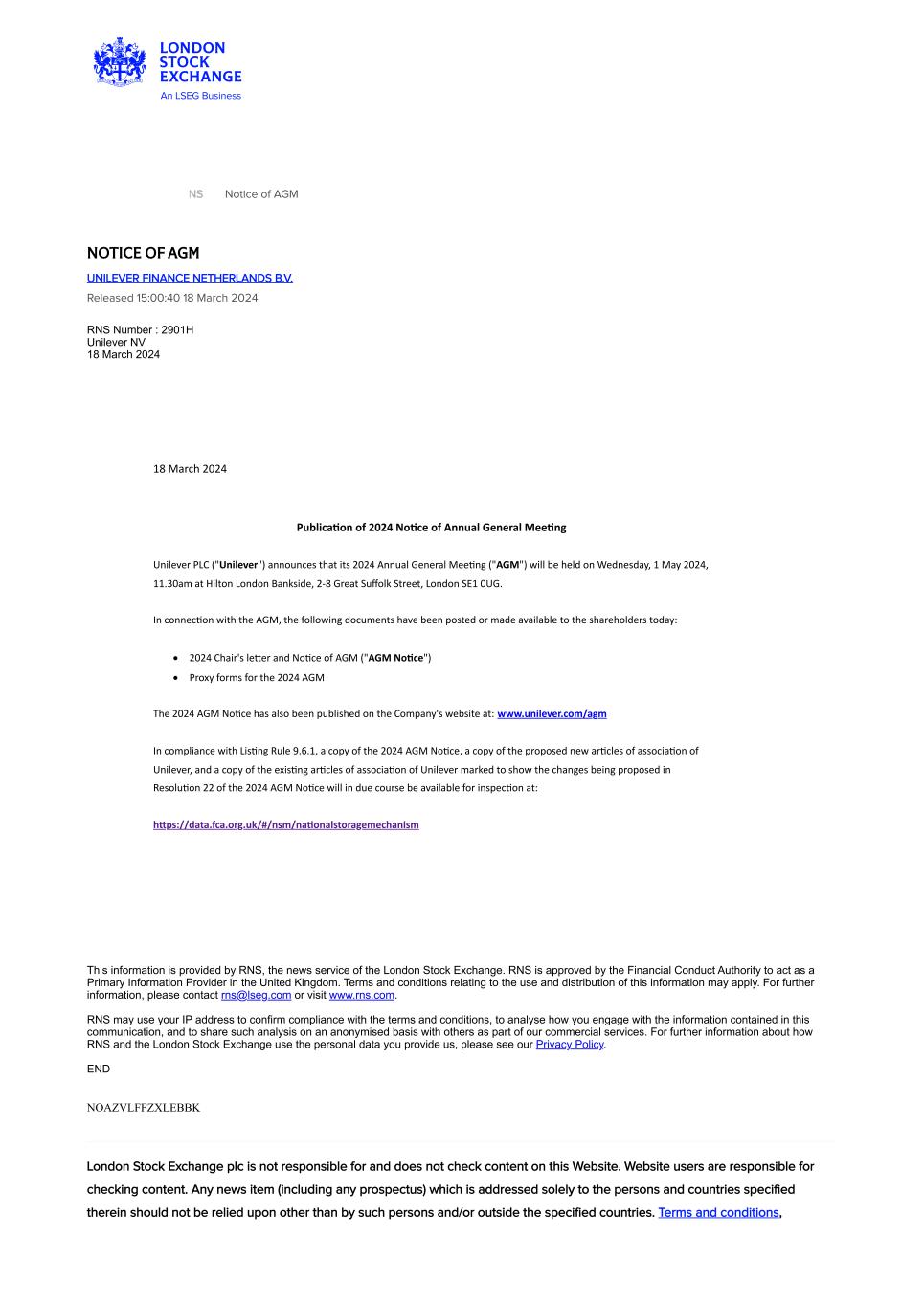 | Exhibit | 99.1 | Stock exchange announcement dated | March 18, 2024 | Entitled | |