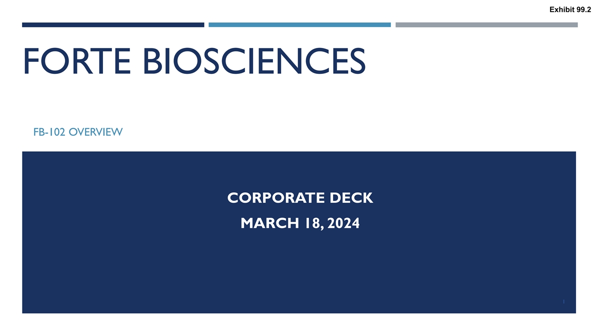 Exhibit 99.2 FORTE BIOSCIENCES FB-102 OVERVIEW CORPORATE DECK MARCH 18, 2024 1