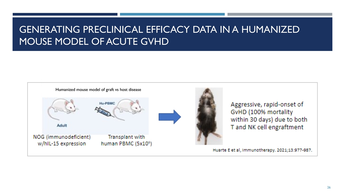 GENERATING PRECLINICAL EFFICACY DATA IN A HUMANIZED MOUSE MODEL OF ACUTE GVHD Humanized mouse model of graft vs host disease 26