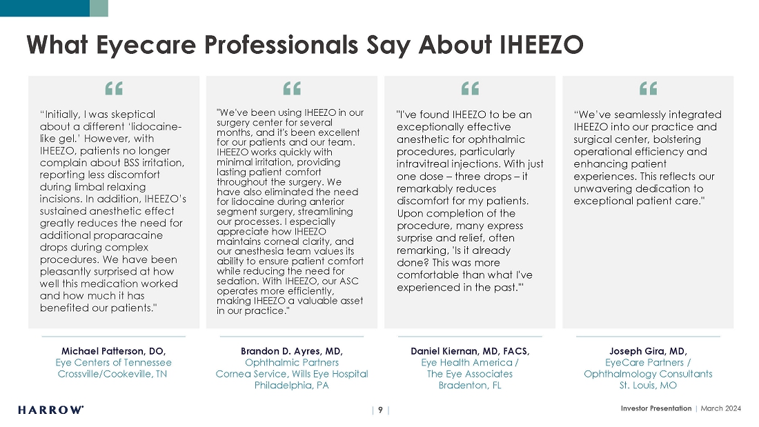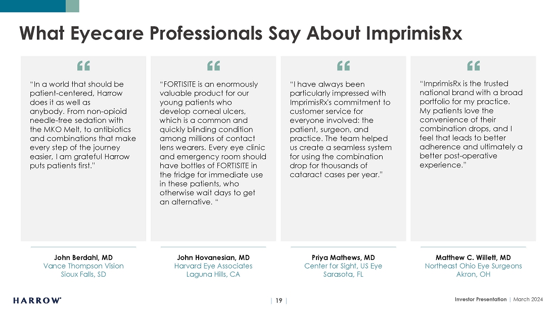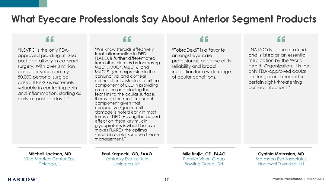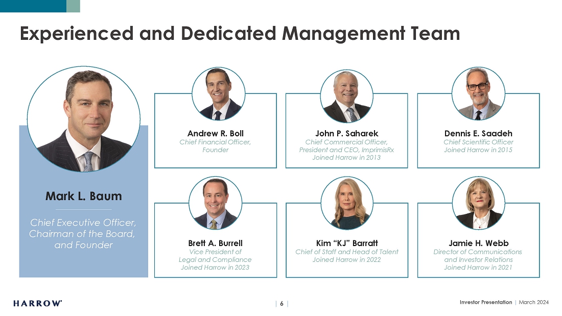 Harrow will only reach its destiny with the help of great people, and we remain on the hunt for talent who can thrive in our entrepreneurial culture. At all levels, Harrow is not a place to “hide out,” do “busy work,” and achieve mediocrity. We depend on individual initiative, creativity, and an audacious spirit. In this vein, I want to mention that earlier this year, we announced the appointments of Adrienne Graves, Ph.D., and Lauren Silvernail to Harrow’s Board of Directors. Having served in senior executive and Board positions at many leading pharmaceutical companies, Adrienne and Lauren are highly respected business leaders who share Harrow’s strategic vision. The knowledge, expertise, and diverse perspectives they contribute to Harrow will be invaluable as we strive to optimize stockholder value. With a product portfolio that is now one of the most dynamic in the U.S. market, we are well-positioned for many years of growth.