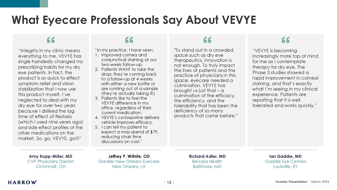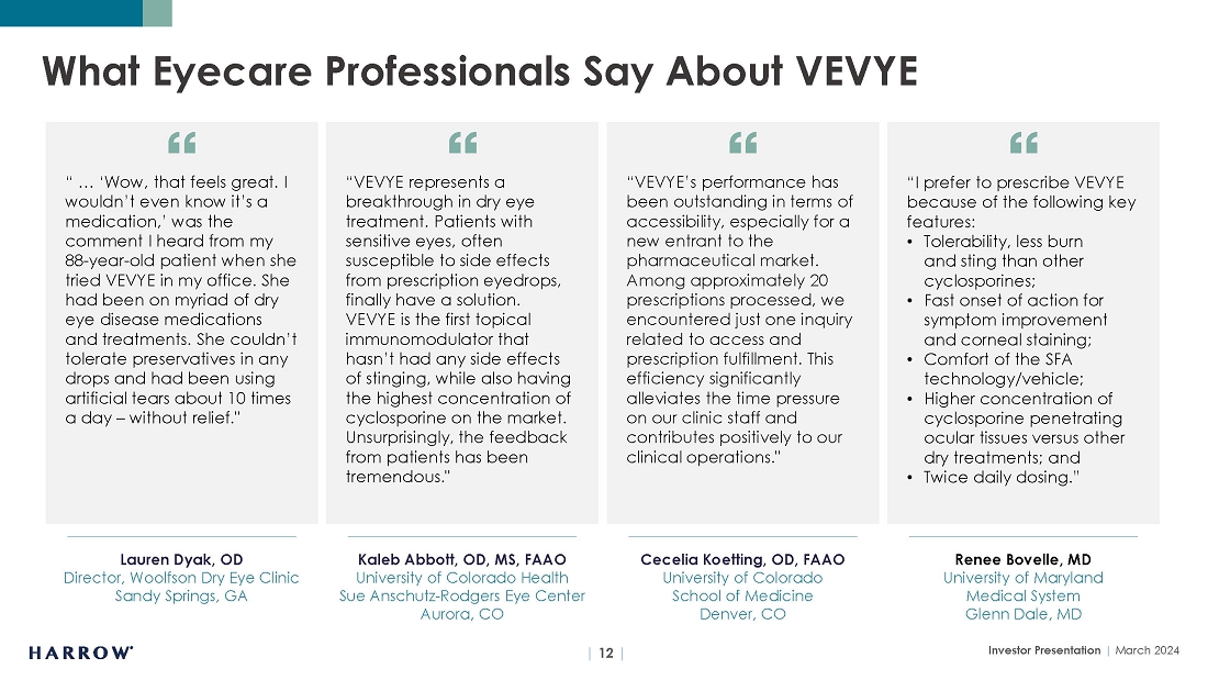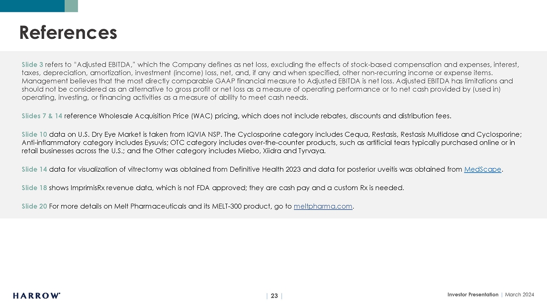 Additionally, Harrow refers to non-GAAP financial measures, specifically Adjusted EBITDA, adjusted earnings, core gross margin, core net loss, and core diluted net loss per share. A reconciliation of non-GAAP measures with the most directly comparable GAAP measures is included in this letter.