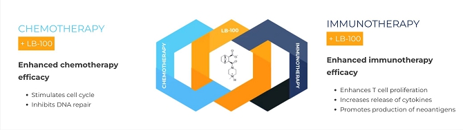 Most cancer patients are treated with either chemotherapy or immunotherapy or both. These therapies often have limited benefit and there is a high unmet medical need to enhance their effects. In many preclinical models we have shown that LB-100 enhances the effect of both chemotherapy and Immunotherapy