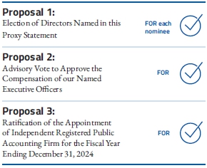 ● The election to our Board of Directors of the ten nominees named in this Proxy Statement; ● An advisory say-on-pay vote to approve the compensation of our Named Executive Officers (NEOs); ● Ratification of the Audit and Finance Committee’s appointment of Deloitte as our independent registered public accounting firm for the fiscal year ending December 31, 2024.