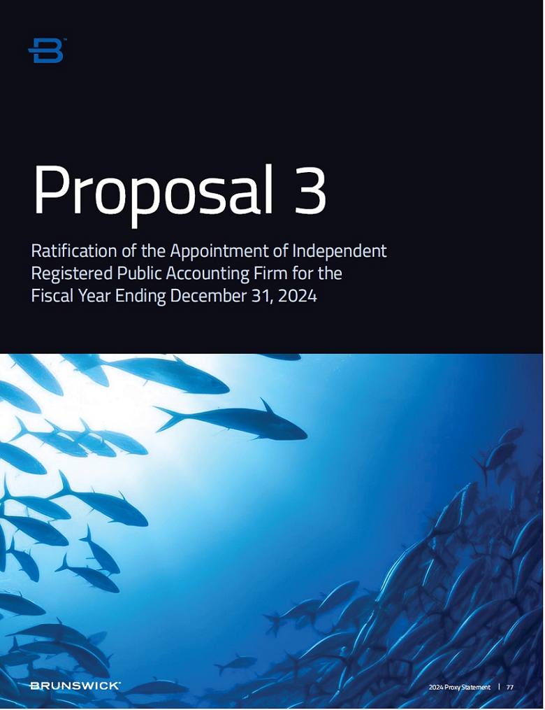 and represented virtually in person or by proxy at the Annual Meeting will be required for the ratification of the Audit and Finance Committee’s appointment of Deloitte as Brunswick’s independent registered public accounting firm for the fiscal year ending December 31, 2024. Because the ratification of the independent registered public accounting firm requires a majority of the shares having voting power and represented at the Annual Meeting, abstentions will have the same effect as votes against ratification. Because we expect that brokers will have discretionary authority to vote on this proposal, we do not expect any broker non-votes.