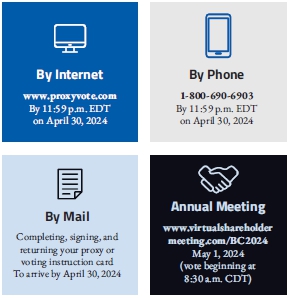 We invite you to join us for our annual meeting of shareholders, which will be conducted via live audio webcast on May 1, 2024. You may attend the virtual meeting of shareholders online and submit your questions during the meeting by visiting www.virtualshareholdermeeting.com/BC2024. We look forward to your attendance and participation again this year.