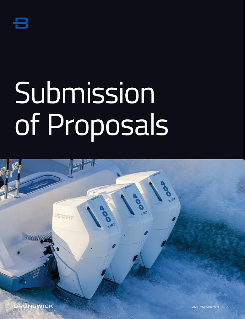 In order to be considered for inclusion in Brunswick’s proxy materials for our 2025 Annual Meeting, a shareholder proposal must be received at Brunswick’s principal executive offices at 26125 N. Riverwoods Blvd., Suite 500, Mettawa, Illinois 60045 (fax: 847-735-4433; email: corporate.secretary@brunswick.com) by November 20, 2024.