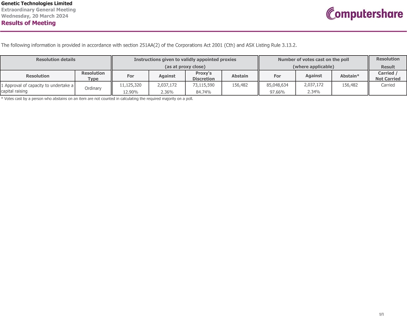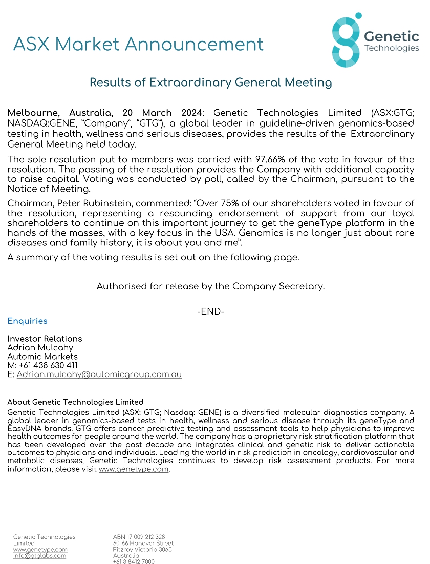 | GENETIC TECHNOLOGIES LIMITED | ||