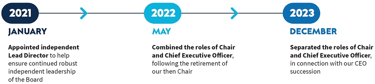 stockholders at this time. This structure promotes a seamless executive transition and enables the Board to continue to maximize Miguel’s skills and talents, balanced by the robust oversight provided by our independent directors — including fully independent Committees, an independent Vice Chair, and an independent Lead Director role with substantive duties and responsibilities.