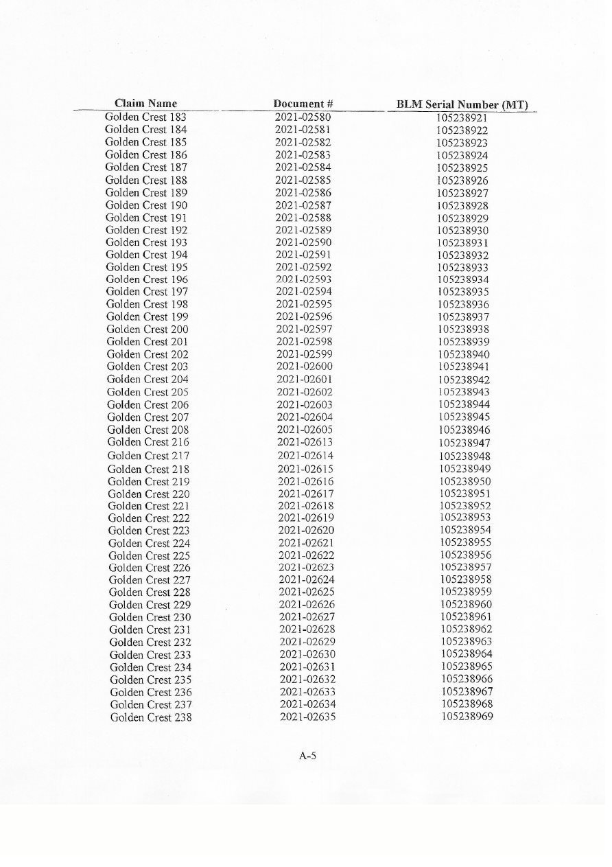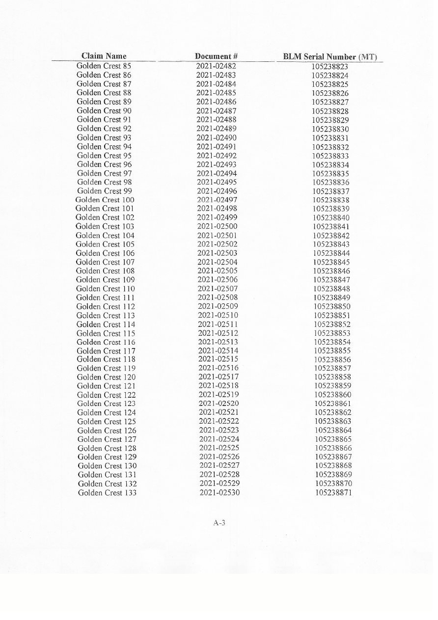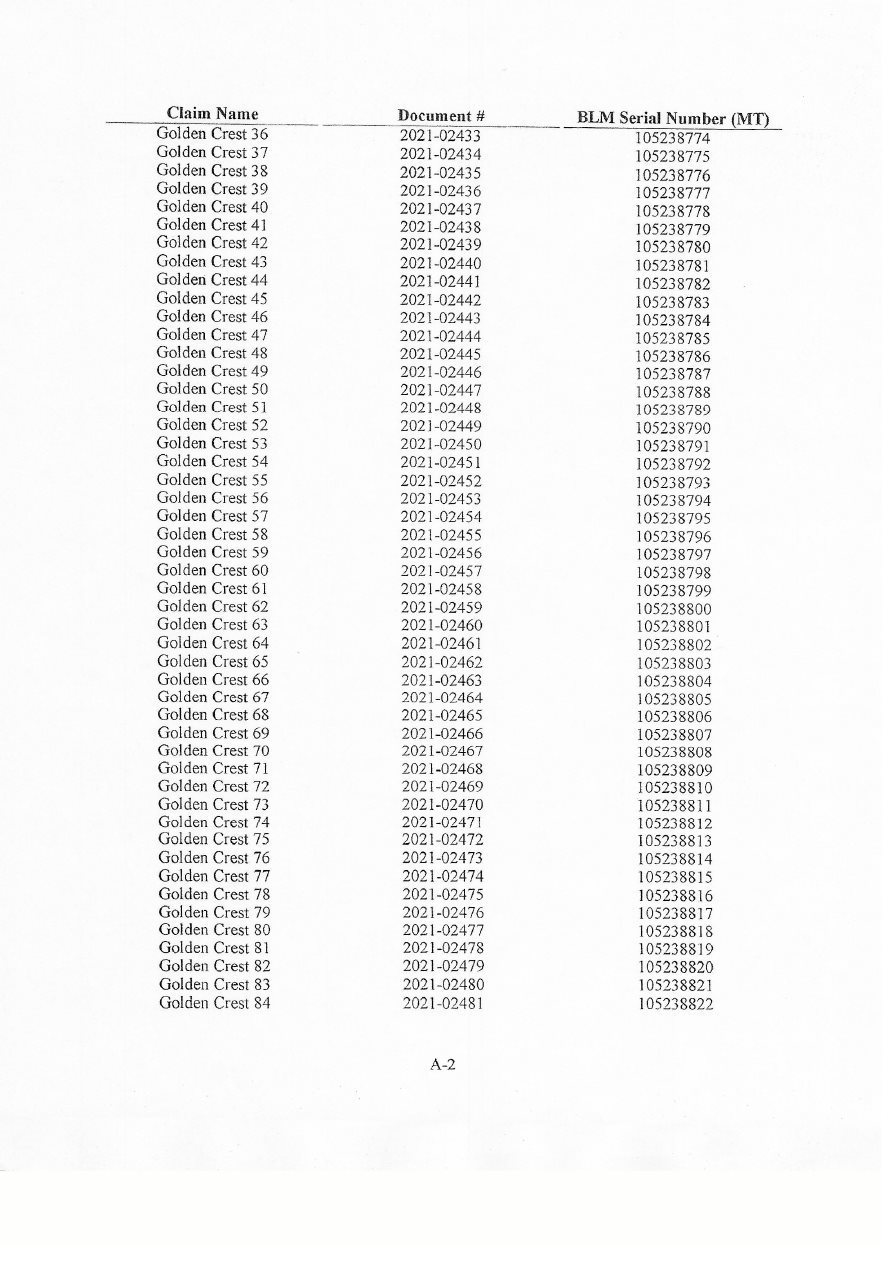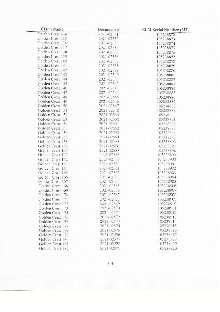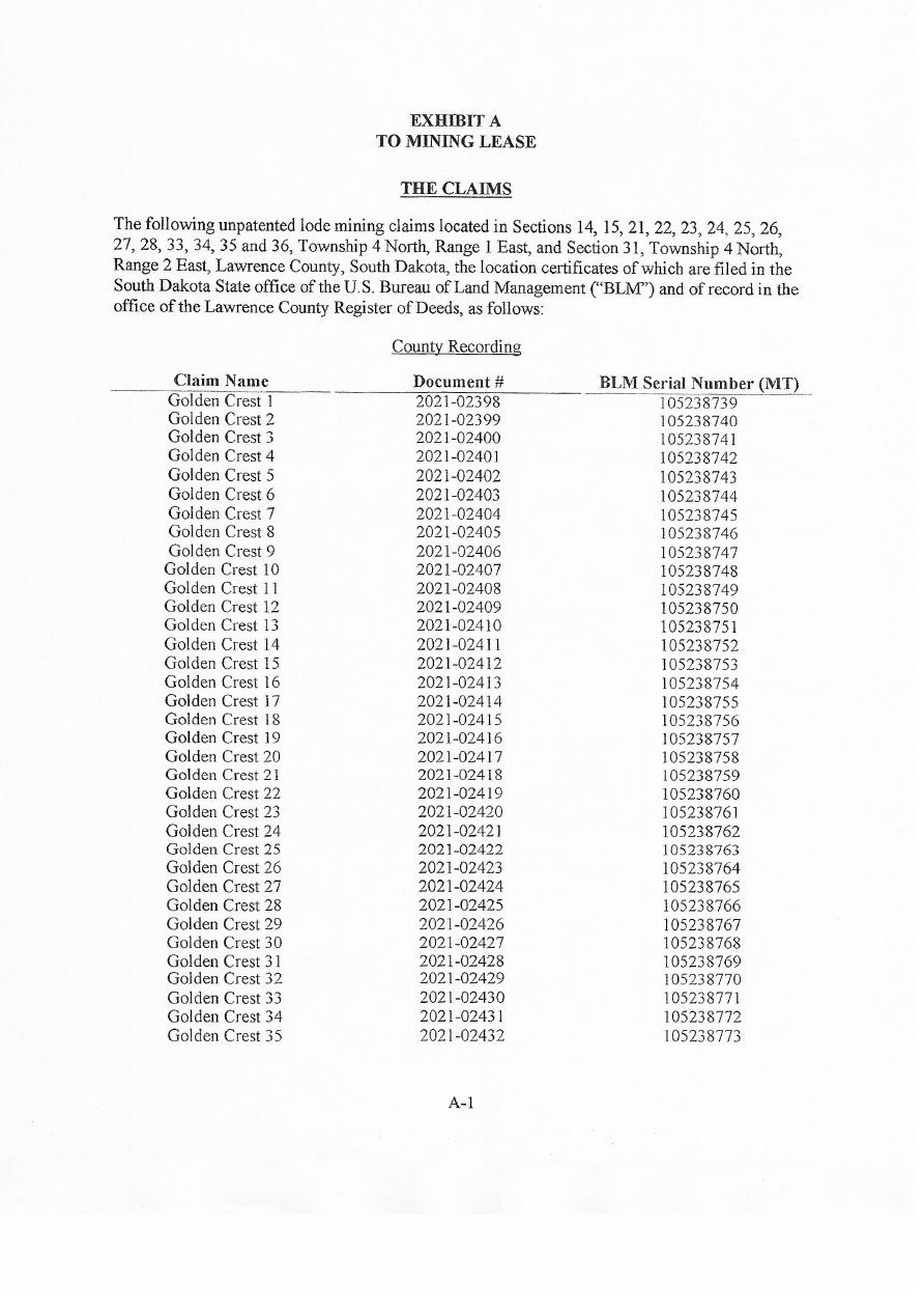 In addition, Solitario staked additional mineral claims, including some claims included in the area of interest of the GC Claims and claims not related to the GC Claims, as part of the Golden Crest project. As of December 31, 2023, Solitario has incurred costs for staking, filing fees, legal and other costs totaling $1,035,000 capitalized as initial acquisition costs related to claims on the Golden Crest project.