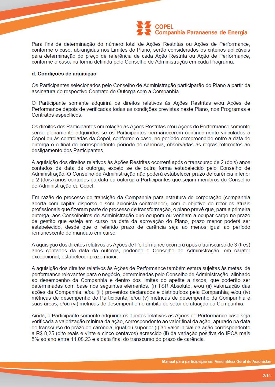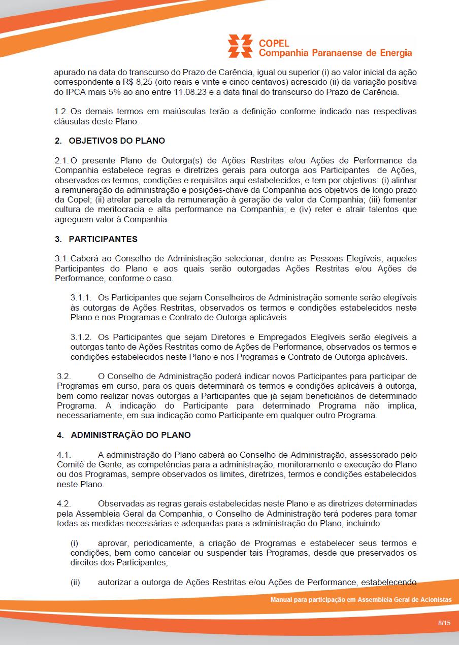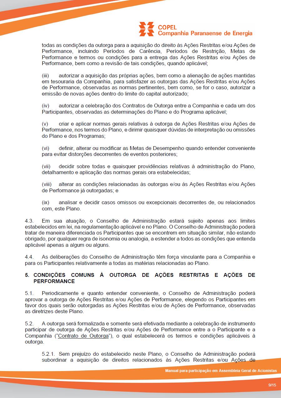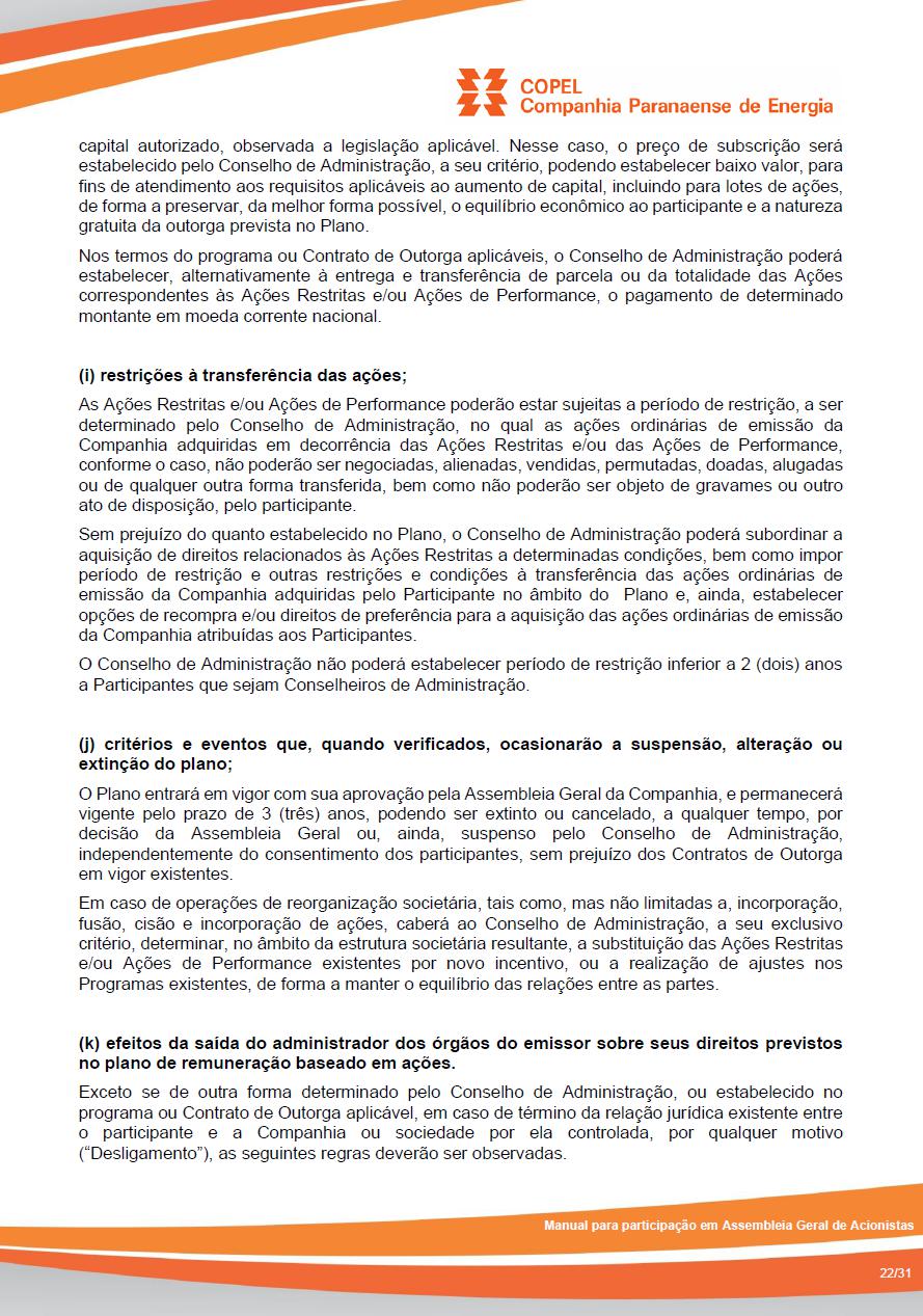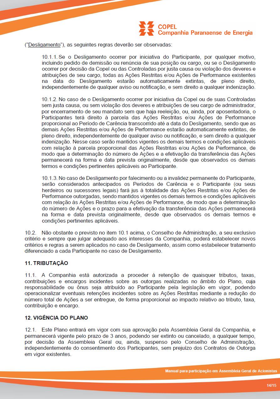 It is with immense pleasure that I present to you this document containing the Management's Proposal and Manual for participation In General Shareholders’ Meetings of the Companhia Paranaense de Energia - Copel, with general guidance for an effective participation and exercise of the vote.