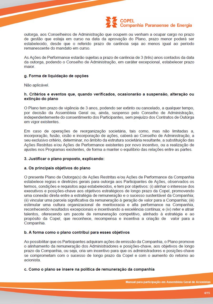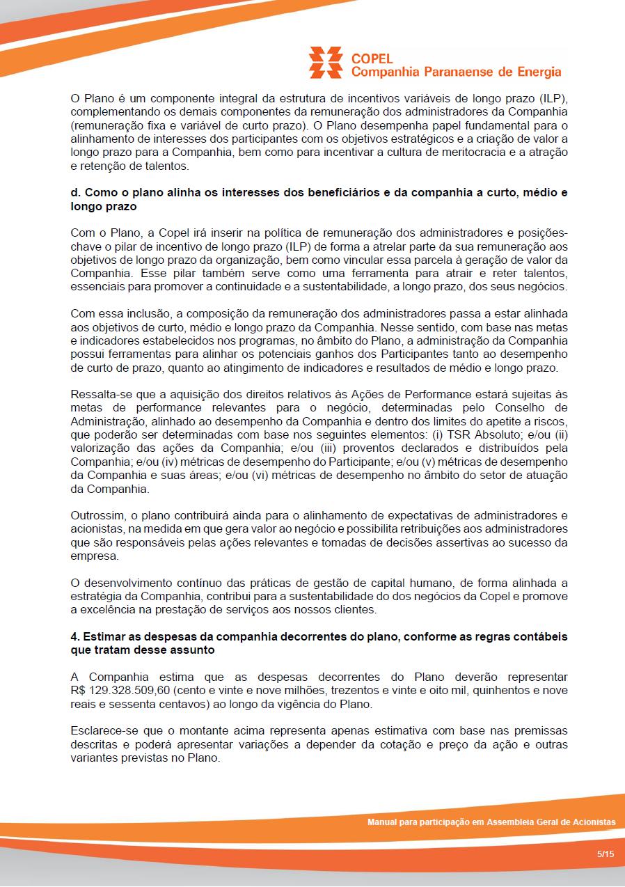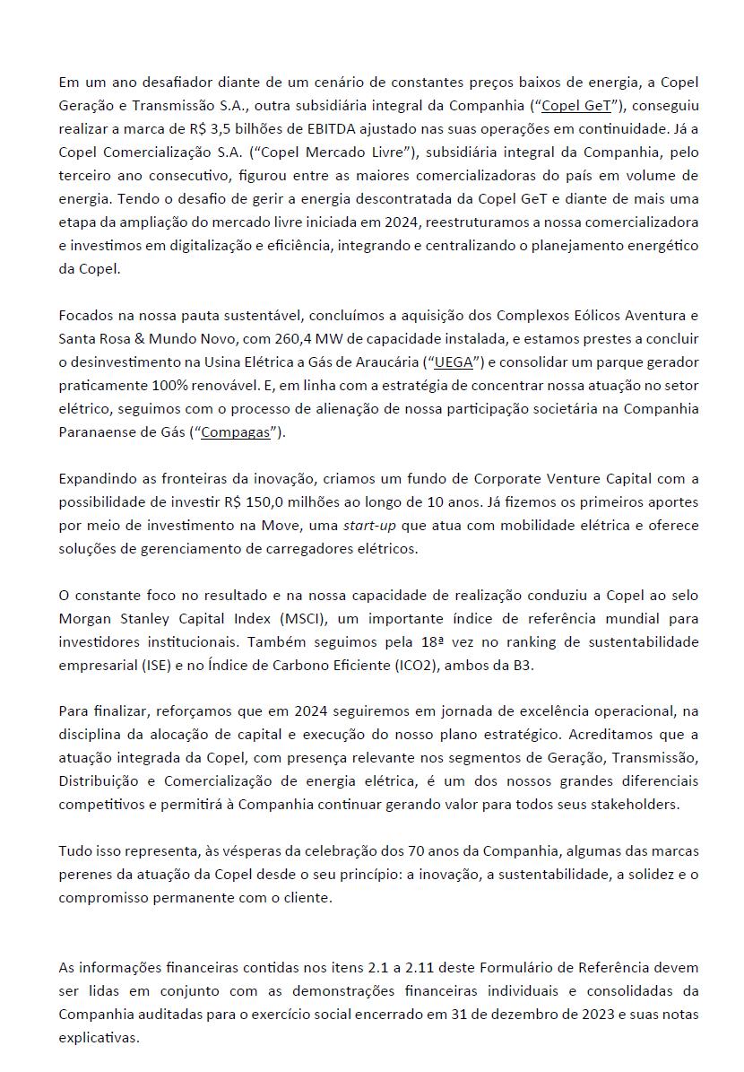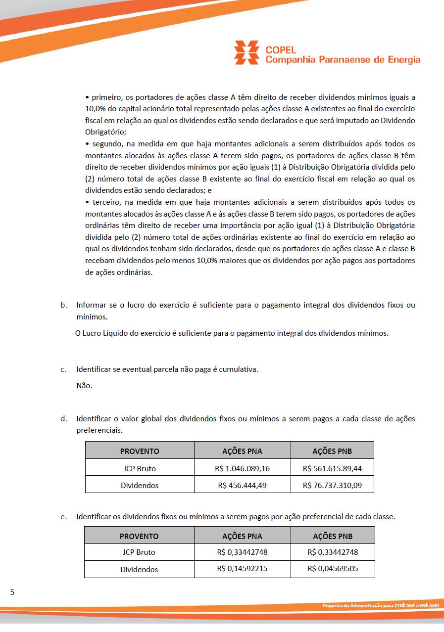 It is with immense pleasure that I present to you this document containing the Management's Proposal and Manual for participation In General Shareholders’ Meetings of the Companhia Paranaense de Energia - Copel, with general guidance for an effective participation and exercise of the vote.