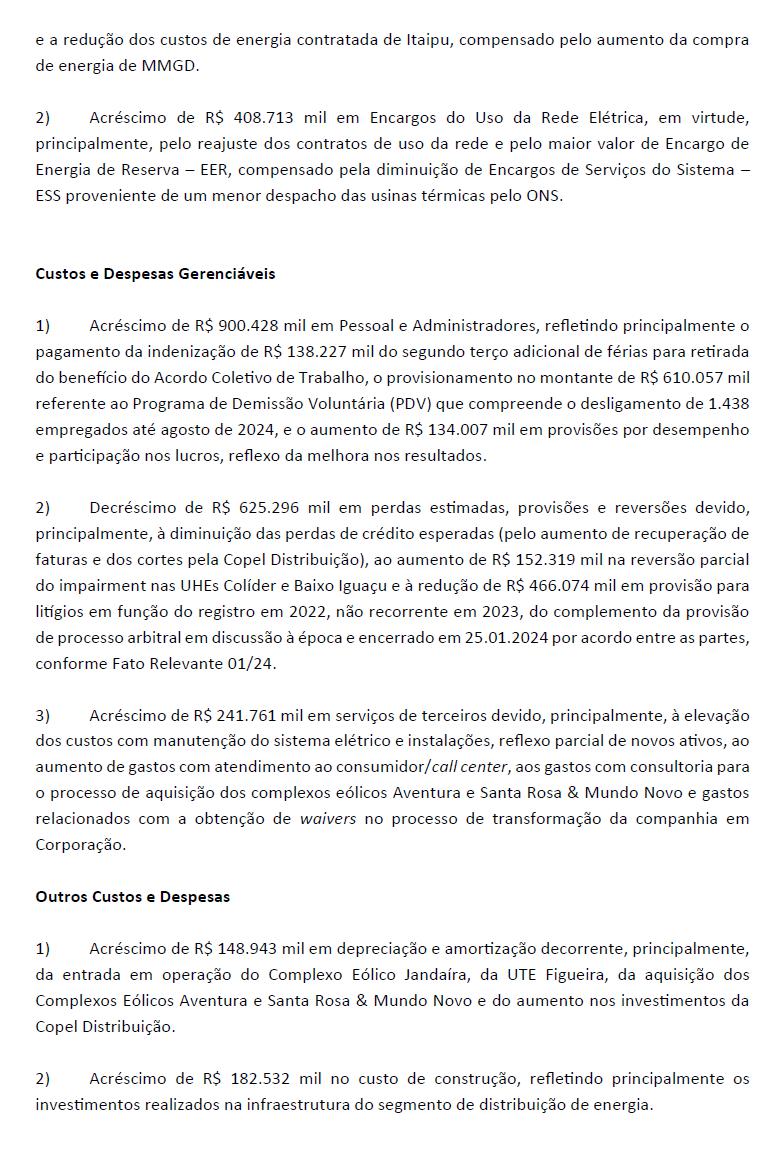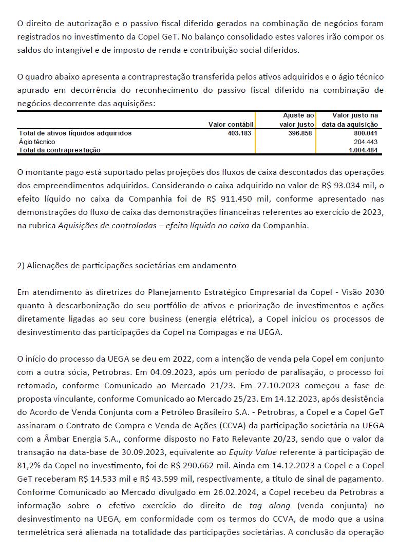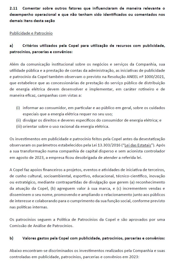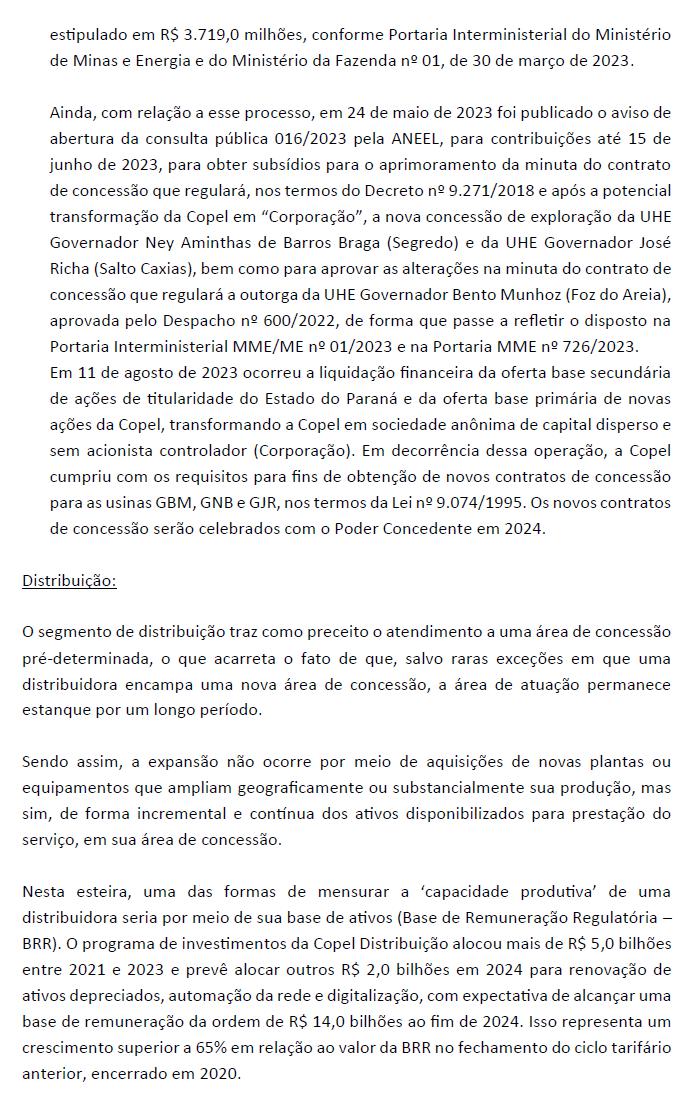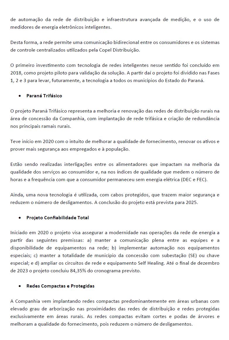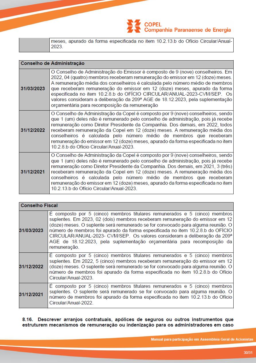 Any request for inclusion of candidates in the Distance Voting Bulletin of the AGM must be submitted to the Company by March 28, 2024 by means of a written request sent to the Investor Relations Officer, to the electronic address acionistas@copel.com, as provided for in CVM Resolution no. 81/2022, observing the requirements provided for in the same instruction.