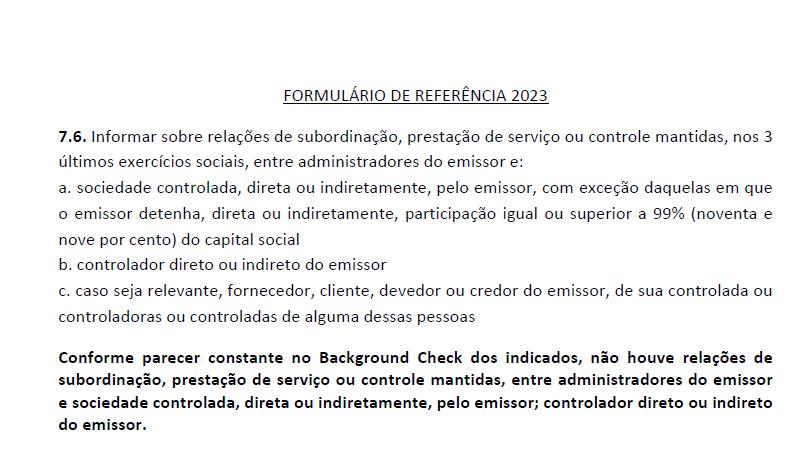 In addition, the Company informs that: (i) in case of receipt of divergent ballot papers for a same CPF or CNPJ number, received directly by the Company and by the bookkeeping agent, the ballot sent by the bookkeeping agent will prevail, pursuant CVM Resolution no. 81/2022; (ii) when the Custodian Agent receives divergent voting instructions for a same CPF or CNPJ, both will be disregarded, pursuant to CVM Resolution no. 81/2022; (iii) once the period for receiving remote voting has expired, the shareholder will not be able to change the voting instructions, except at the General Meeting itself; (iv) in the event of adjournment of the meeting, the voting instructions will be considered normally, as well as in its holding on second call, provided that the adjournment is less than 30 days from the initially scheduled date, pursuant to CVM Resolution no. 81/2022.
