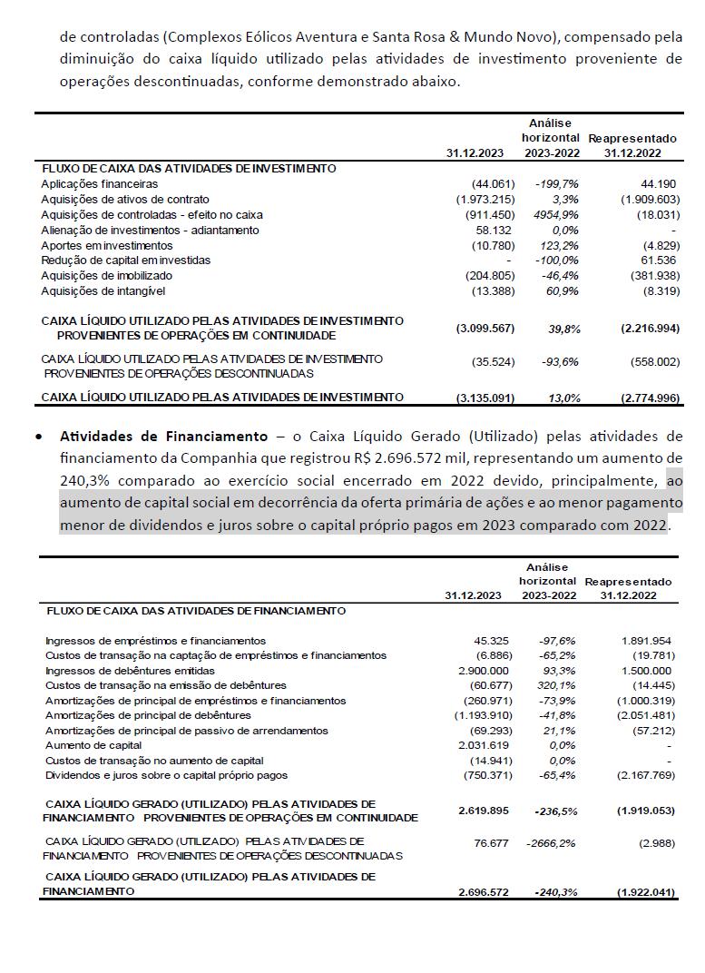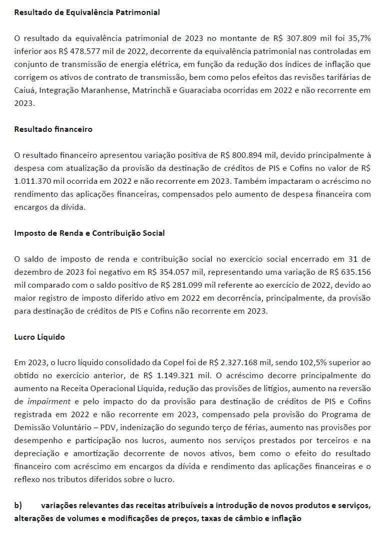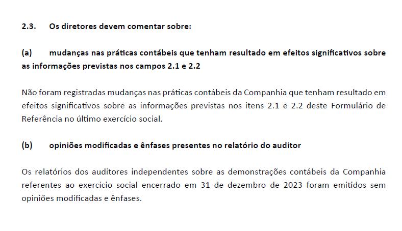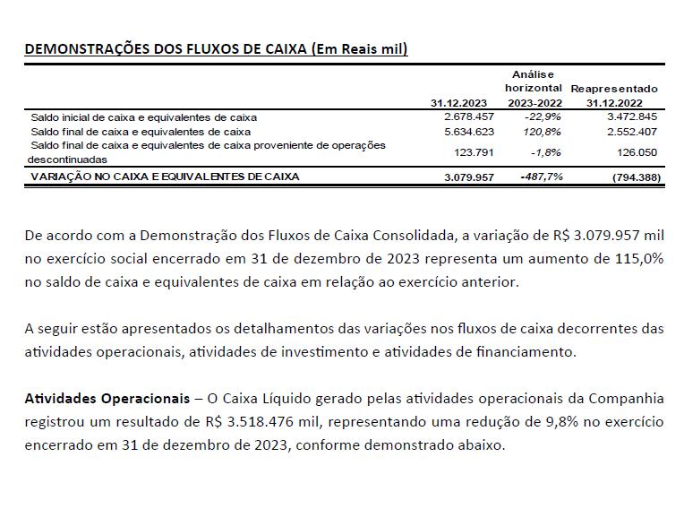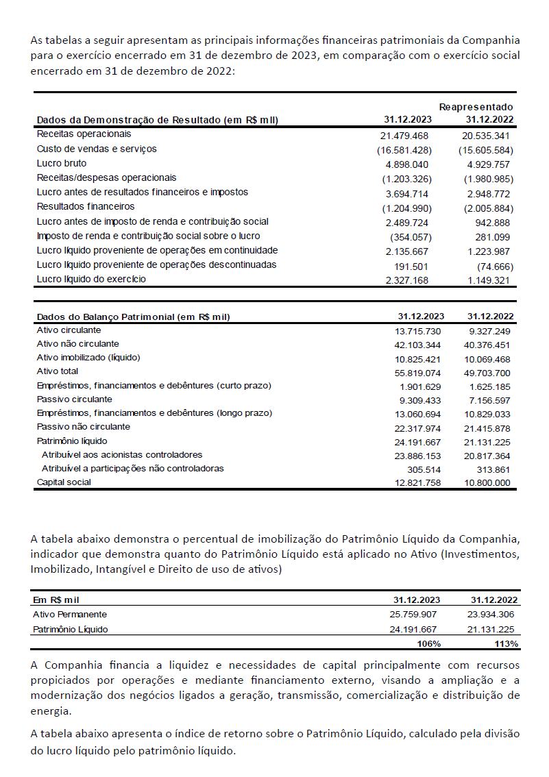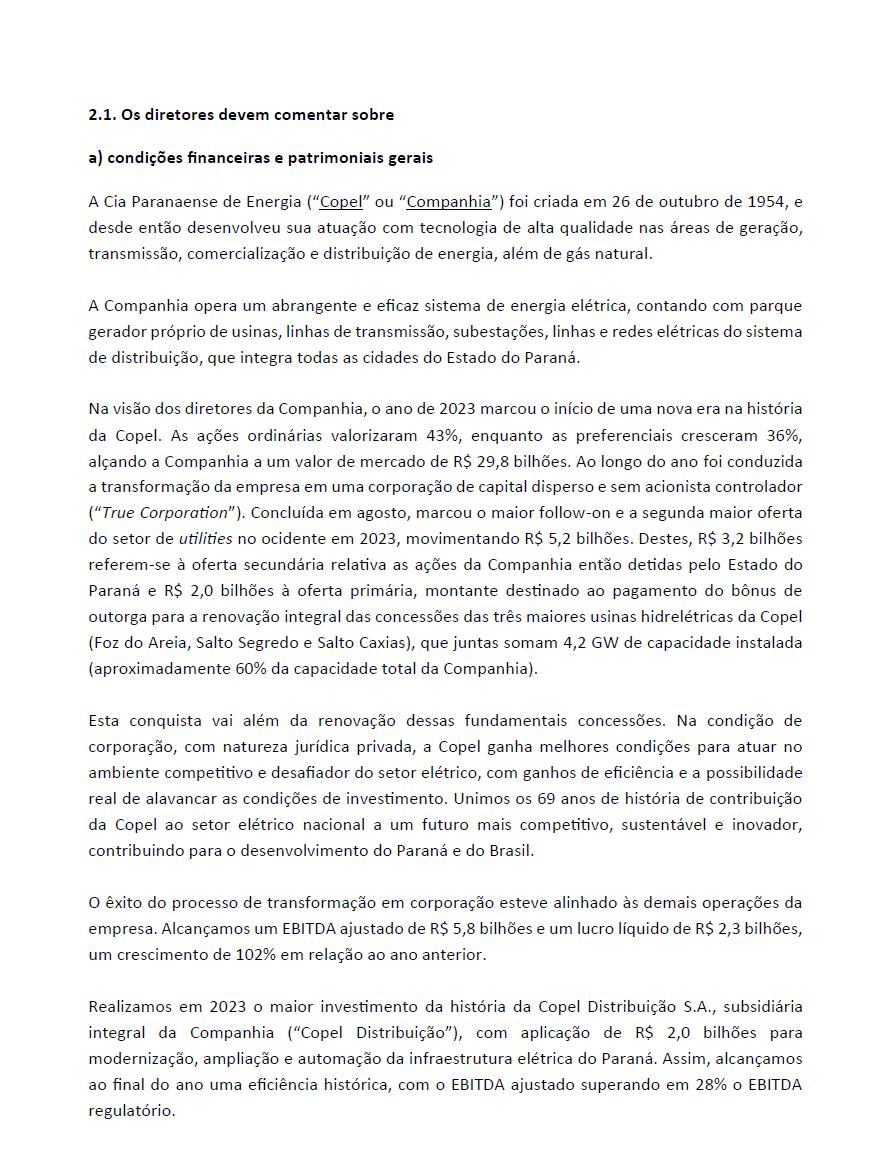 In relation to this matter, this proposal presents the Comments of the Managers on the Company's financial situation, in the form of item 2 of the Reference Form provided for in CVM Resolution 80/2022 (Annex III).