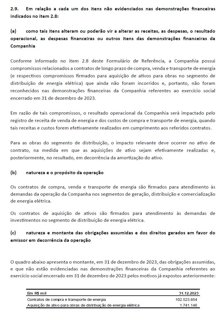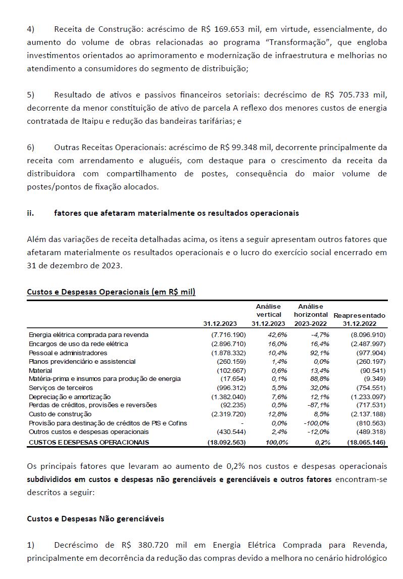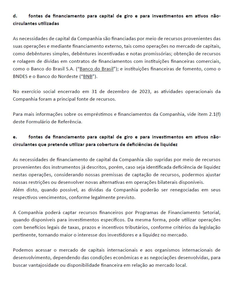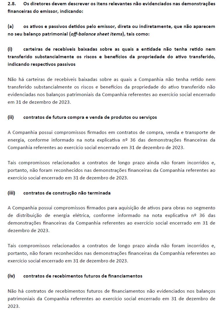 | v | Positions for 5 (five) years without readjustment, partially recomposed in December 2023 (at the 209th EGM it was possible to partially recompose inflation for the period, equivalent to 50% of the total in the period); |