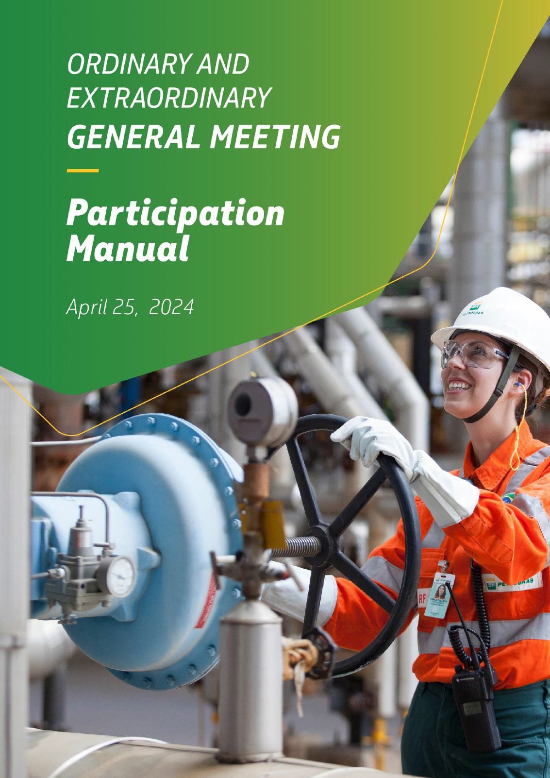 The Company informs that shareholders who want to participate in person or via Digital Platform in the Meetings must register by 1:00 p.m. of April 23, 2024, at https://qicentral.com.br/m/agoe-petrobras-2024, sending the documents below. For those who will participate in person, the documents can be exceptionally presented on the day of the Meetings, and the Company informs that it will receive them after 10:00 a.m., at the venue of the Meetings.