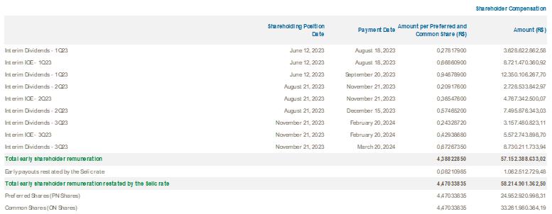 §3- Intermediate and interim dividends and interest on equity shall be allocated to the minimum mandatory dividend.