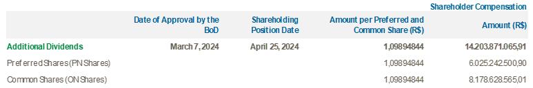 The minimum percentage of the Company’s share capital necessary for the multiple voting procedure to be requested for the election of the members of the Board of Directors at the Annual Shareholders' Meeting is five percent (5%) of the voting capital, according to CVM Resolution 70, March 22, 2022. The possibility to request the adoption of a multiple voting procedure shall be exercised by shareholders up to forty-eight (48) hours before the Meetings, i.e. until 1:00 p.m. of April 23, 2024, according to paragraph 1 of article 141 of Brazilian Corporation Law.