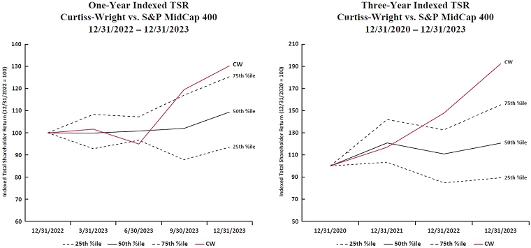 | (3) Approve the Curtiss-Wright Corporation 2024 Omnibus Incentive Plan | FOR | To foster and promote the long-term financial success of the Company and to increase stockholder value by (i) providing eligible employees, officers, non-employee directors, consultants, and advisors of the Company with incentives that align their interests with stockholders’ interests and that contribute to the long-term growth and profitability of the Company, and (ii) enabling the Company to attract, retain and motivate highly qualified employees, officers, non-employee directors, consultants, and advisors who are in a position to make significant contributions to the Company for its successful operations. | Page 81 |