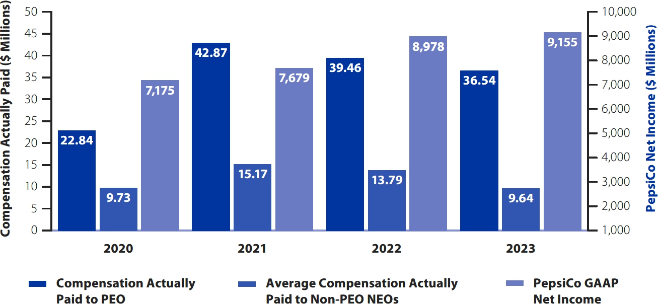 Please mark this proxy as indicated on the reverse side to vote on any item. Shares represented by this proxy will be voted in accordance with your specifications, and, in the discretion of the proxies, upon any other matter that may properly come before the meeting or any adjournment or postponement thereof. For holders of Common Stock of PepsiCo, if you do not provide specific instructions, shares represented by this proxy will be voted in accordance with the Board of Directors' recommendations. For participants in the PepsiCo Savings Plan, if you do not provide voting instructions, the trustee will vote the shares that are deemed to be in the account in the PepsiCo Savings Plan in the same proportion as the PepsiCo Savings Plan shares of other participants for which the trustee has received proper voting instructions. The votes by PepsiCo Savings Plan participants must be received no later than 11:59 p.m. Eastern Daylight Time on April 28, 2024.
