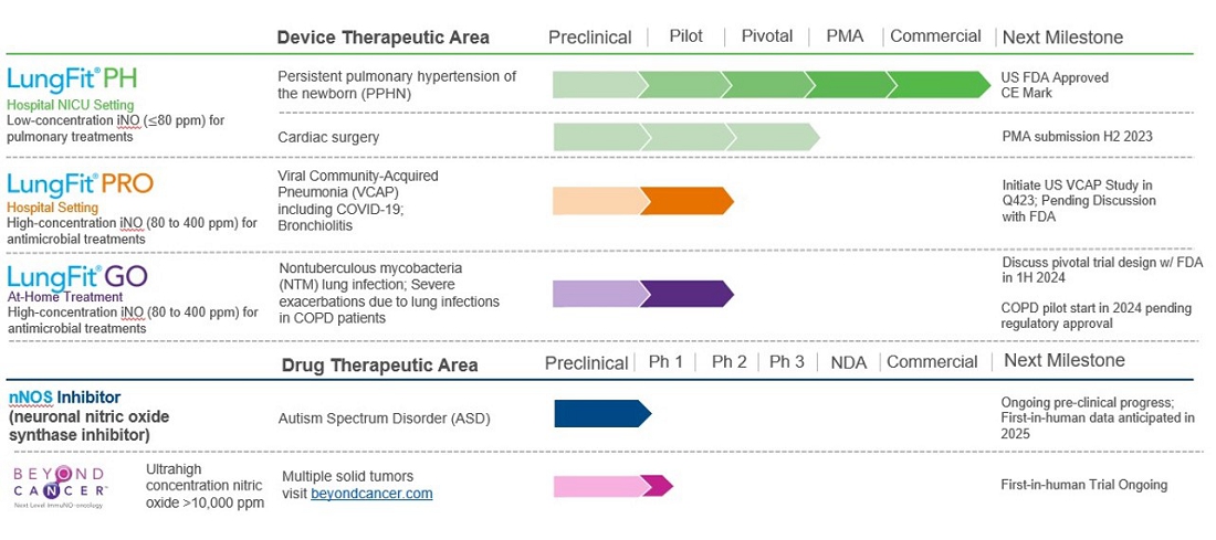 We are a commercial-stage medical device and biopharmaceutical company developing a platform of nitric oxide (“NO”) generators and delivery systems (the “LungFit® platform”) capable of generating NO from ambient air. Our first device, LungFit® PH received premarket approval (“PMA”) approval from the U.S. Food and Drug Administration (“FDA”) in June 2022. The NO generated by the LungFit® PH system is indicated to improve oxygenation and reduce the need for extracorporeal membrane oxygenation in term and near-term (>34 weeks gestation) neonates with hypoxic respiratory failure associated with clinical or echocardiographic evidence of pulmonary hypertension in conjunction with ventilatory support and other appropriate agents. This condition is commonly referred to as persistent pulmonary hypertension of the newborn or “PPHN”. The LungFit® platform can generate NO up to 400 parts per million (“ppm”) for delivery to a patient’s lungs directly or via a ventilator. LungFit® can deliver NO either continuously or for a fixed amount of time at various flow rates and has the ability to either titrate dose on demand or maintain a constant dose. In July 2022, the Company commenced marketing LungFit® PH in the United States for PPHN as a medical device.