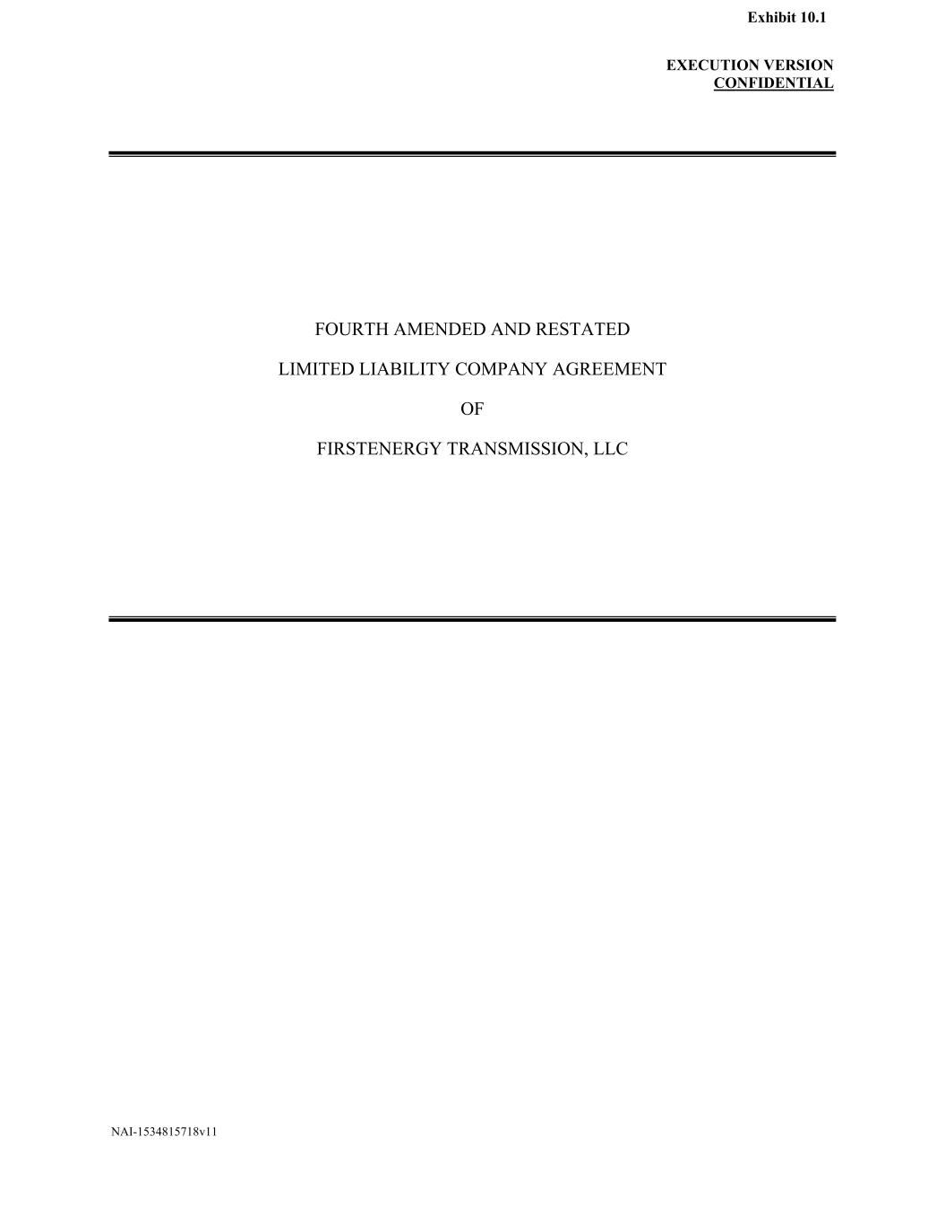 NAI-1534815718v11 EXECUTION VERSION CONFIDENTIAL FOURTH AMENDED AND RESTATED LIMITED LIABILITY COMPANY AGREEMENT OF FIRSTENERGY TRANSMISSION, LLC Exhibit 10.1
