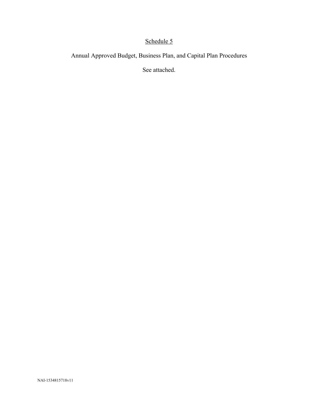 NAI-1534815718v11 Schedule 5 Annual Approved Budget, Business Plan, and Capital Plan Procedures See attached.
