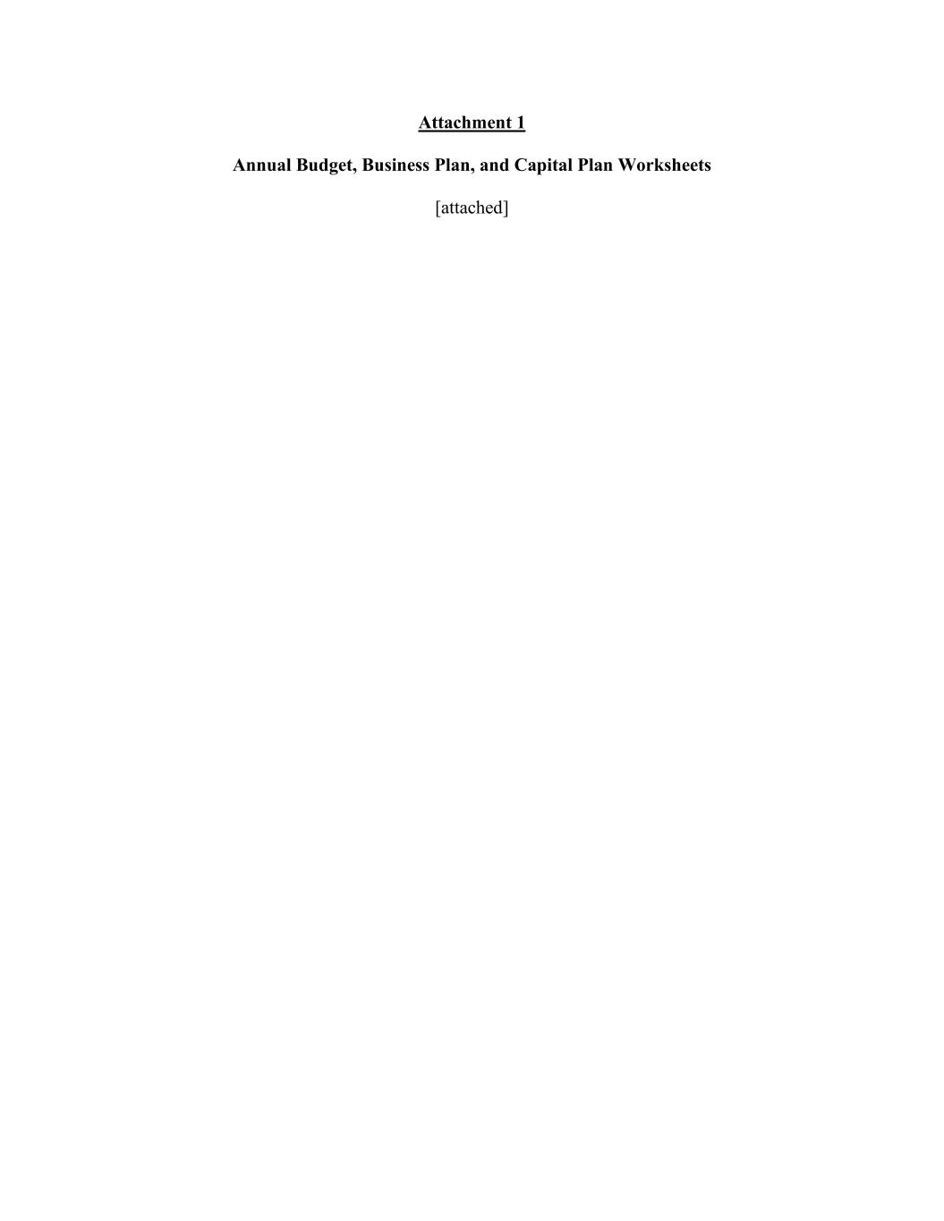 Attachment 1 Annual Budget, Business Plan, and Capital Plan Worksheets [attached]