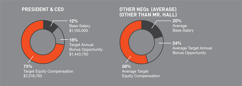 Our executive compensation policy is designed to enable the Company to attract, motivate, and retain highly qualified senior executives who have the skills to drive our continued profitability, growth, and success by providing a competitive compensation opportunity based significantly on performance. Our intent is to provide fair and equitable compensation in a way that rewards executives for achieving specified financial goals. Our performance-related awards are structured to link a substantial portion of our executives’ total potential compensation to the Company’s performance on both a long-term and short-term basis, to recognize individual contributions, as well as overall business results, and to align executive and stockholder interests. Accordingly, we reward performance in excess of pre-established targets of, generally, Adjusted EBIT and ROIC, and we avoided establishing goals that could divert our executives’ attention from the fundamentals of effective and efficient operations. A significant portion of the total compensation paid to our NEOs is in the form of long-term equity.