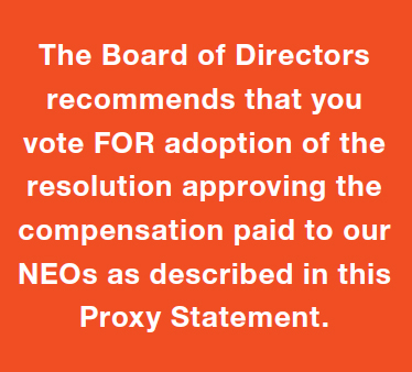 “RESOLVED, that the compensation paid to the Company’s NEOs, as disclosed in this Proxy Statement pursuant to the compensation disclosure rules of the SEC, including the Compensation Discussion and Analysis, compensation tables, and related information and discussion, is hereby APPROVED.”