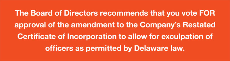 Proposal 4. AMENDMENT TO THE COMPANY’S RESTATED CERTIFICATE OF INCORPORATION TO ALLOW FOR EXCULPATION OF OFFICERS AS PERMITTED BY DELAWARE LAW