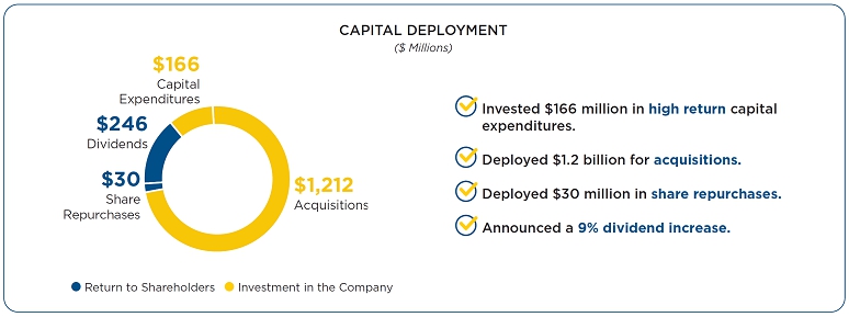 Hubbell has a proven track record of successfully acquiring and integrating businesses to create a focused portfolio with attractive growth and margin characteristics. In 2023, Hubbell continued its focus on growth by completing the following three acquisitions: