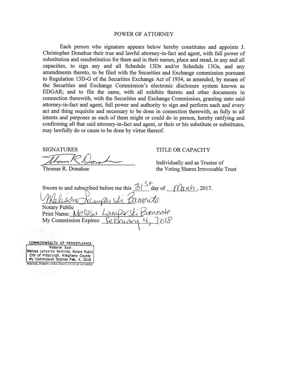 1.       The number of shares indicated represent shares beneficially owned by registered investment companies advised by subsidiaries of Federated Hermes, Inc. that have been delegated the power to direct investment and power to vote the securities by the registered investment companies’ board of trustees or directors. All of the voting securities of Federated Hermes, Inc. are held in the Voting Shares Irrevocable Trust (“Trust”), the trustees of which are Thomas R. Donahue, Ann C. Donahue and J. Christopher Donahue (“Trustees”). In accordance with Rule 13d-4 under the 1934 Act, the Trust, Trustees, and parent holding company declare that the filing of this statement should not be construed as an admission that any of the investment advisers, parent holding company, Trust, and Trustees are beneficial owners (for the purposes of Sections 13(d) and/or 13(g) of the Act) of any securities covered by this statement, and such advisers, parent holding company, Trust, and Trustees expressly disclaim that they are the beneficial owners of such securities.