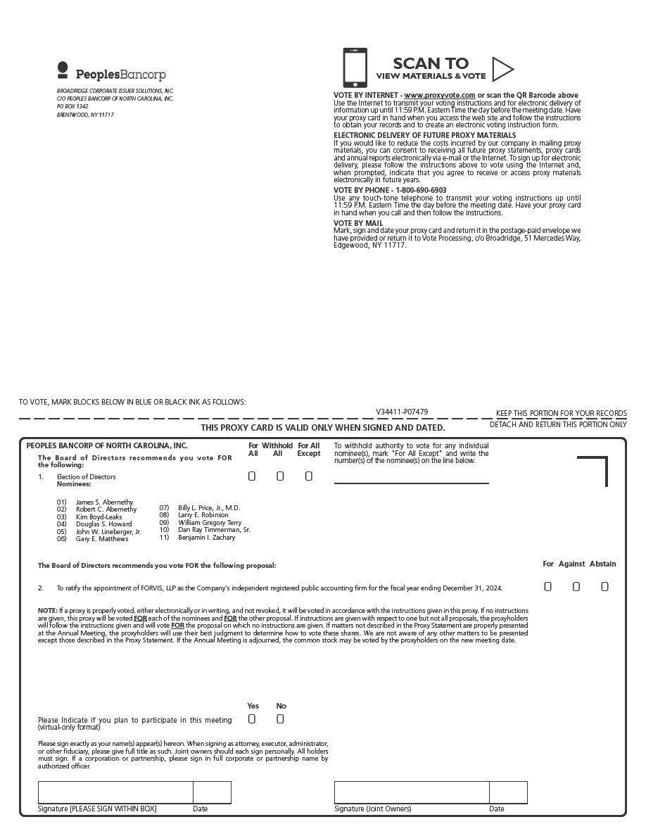 Important Notice Regarding the Availability of Proxy Materials for the Shareholder Meeting to Be Held on May 2, 2024. The Notice, Proxy Statement and the Annual Report to Shareholders for the year ended December 31, 2023 are also available at https://pebk.q4ir.com/filings-financials/proxy-material-and-annual-report/default.aspx. You may also access the above off-site website by going to www.peoplesbanknc.com and clicking on the link.