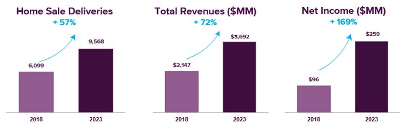 Since 2018, positive macro-economic conditions, along with our operating efficiencies, business strategy and geographic expansion through the acquisition of other homebuilders and organic entrances into new markets has resulted in significant increases in home sale deliveries, total revenues, net income, and total stockholders’ equity.