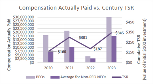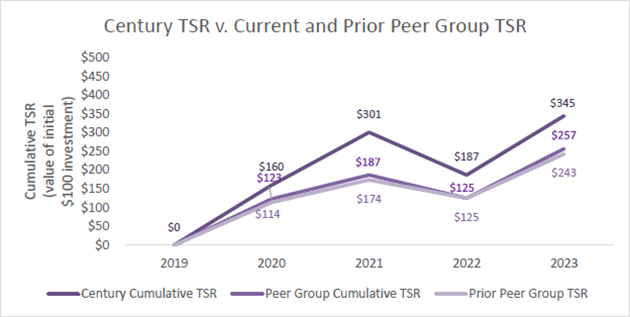 At the Annual Meeting, stockholders will be asked to consider and vote upon the following proposals: (1) to elect seven directors to serve for the ensuing year as members of the Board of Directors of Century; (2) to ratify the appointment of Ernst & Young LLP as our independent registered public accounting firm for the fiscal year ending December 31, 2024; (3) to approve, on an advisory basis, our executive compensation; (4) to approve, on an advisory basis, the frequency of future advisory votes on executive compensation; and (5) to transact such other business as may properly come before the Annual Meeting or at any continuation, postponement, or adjournment thereof. The accompanying Notice of 2024 Annual Meeting of Stockholders and proxy statement describe these matters in more detail. We urge you to read this information carefully.