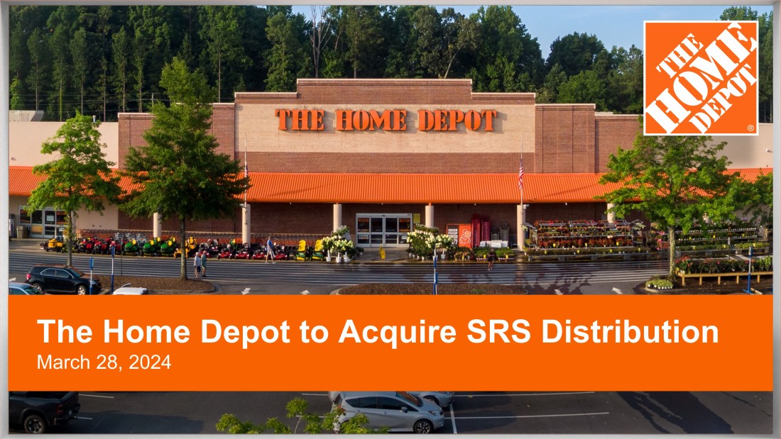 ATLANTA, MARCH 28, 2024 -- The Home Depot®, the world's largest home improvement retailer, has entered into a definitive agreement to acquire SRS Distribution Inc. (“SRS"), a leading residential specialty trade distribution company across several verticals serving the professional roofer, landscaper and pool contractor.