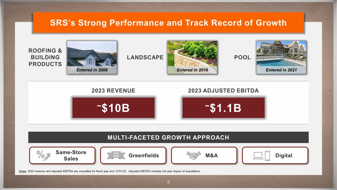 CONFIDENTIAL 4 Key Growth Opportunities INTERCONNECTED CUSTOMER EXPERIENCE PRO ECOSYSTEM NEW STORES SRS expands our Pro Ecosystem